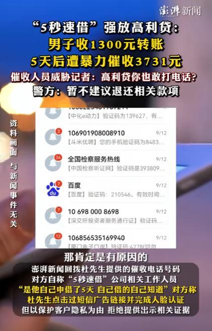 事情的起因是刘大哥(化名)正在家玩手机的时候,突然弹出了一条消息,上面显示自己的银行账户被突然转进了1000多元,看到这条消息的时候,刘大哥很是吃惊,觉得自己也没有到发工资的时候,为什么会突然转进去这么多钱。 随后等他点开转账记录的时候,发现给他转账的这个人他并不认识,这时刘大哥觉得肯定是有人不小心转错账户了,就想着等那个人发现之后肯定会主动联系他的,就没有太放在心上。 谁知次日这个人又打过来电话说因为刘大哥又耽搁了一天没有还款,所以他需要还本金和利息,加起来一共3700余元,到这之后,刘大哥觉得很不对劲,于是就直接去了当地的派出所报了警。 当警方了解了这个事情之后,建议刘大哥先不要将其款项退回,目前警方还在继续侦查中,希望能够快点调查清楚这件事情,还刘大哥一个安稳。 很多网友发到了这件事情之后,纷纷在视频下面评论,有一些网友在下面留言说,他自己去年的时候在这个平台上借了3000块钱,仅一星期的时间就要还1000多的利息,从那以后他就再也没有用过了。 那么通过这件事情告诉大家,在如今这样数据化的时代,一定不要盲目的点击链接,更不要在网上进行高利贷行为,因为很有可能就会在你不知道的情况下被骗得一干二净。 那么对于这件事情,你还有什么想说的吗?