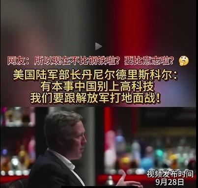 难以置信,这是一个美国军官的认知。 美国陆军部长丹尼尔德里斯科尔说,他们非常有信心赢解放军,理由让人哑然失笑。 他说中国有些技术是很厉害,但可以让它们失灵,在真正的战场上可能有用,也可能没用,最终回到原始的陆地战场还是要看指挥官的指挥,他们培养了很多高端军事人才,美国还没有输过,他们有信心赢得胜利… 不知道美国的这个军官是只有这点水平,还是不得不这么说。但有一点是比较明确了,美国已经承认中国掌握了很多美国没有的先进技术,并安慰自己说“中国过度依赖技术”,希望在这种安慰中找到一点点可怜的自尊。 这些话听着很熟悉,我们以前落后的时候强调钢铁意志,现在我们不仅有钢铁意志,还有了钢铁洪流,轮到美国强调钢铁意志了,想想都解气! 其实美国以往赢的所有战争都是在武器装备上碾压对手,要说战斗意志嘛,可能比印度强不了多少。你认为呢?
