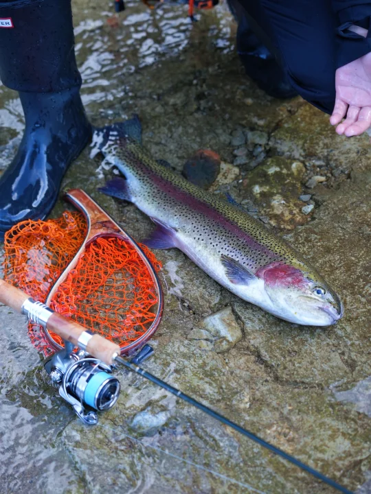 这次和朋友一起去怀柔山里,找了几个地方,两天时间玩的很开心,也终于钓到了两条虹鳟。