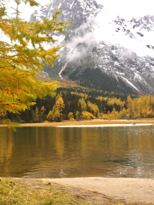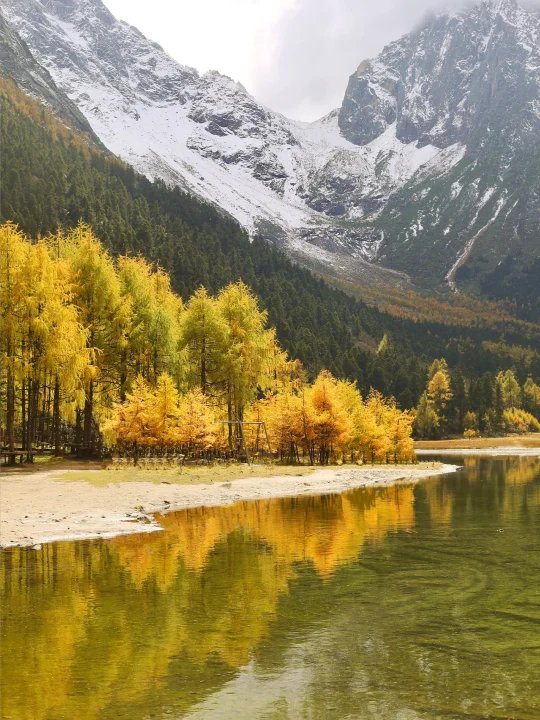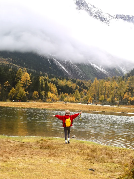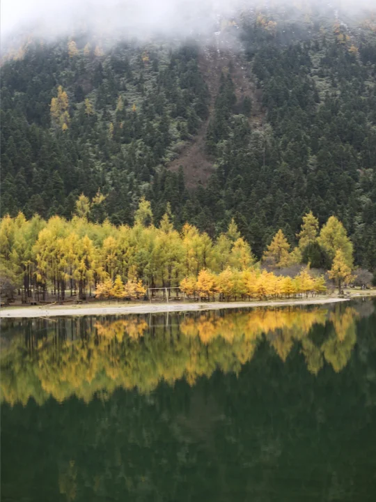 能看着雪峰和湖泊形成的倒影,一路都是彩林,拍照非常出片。