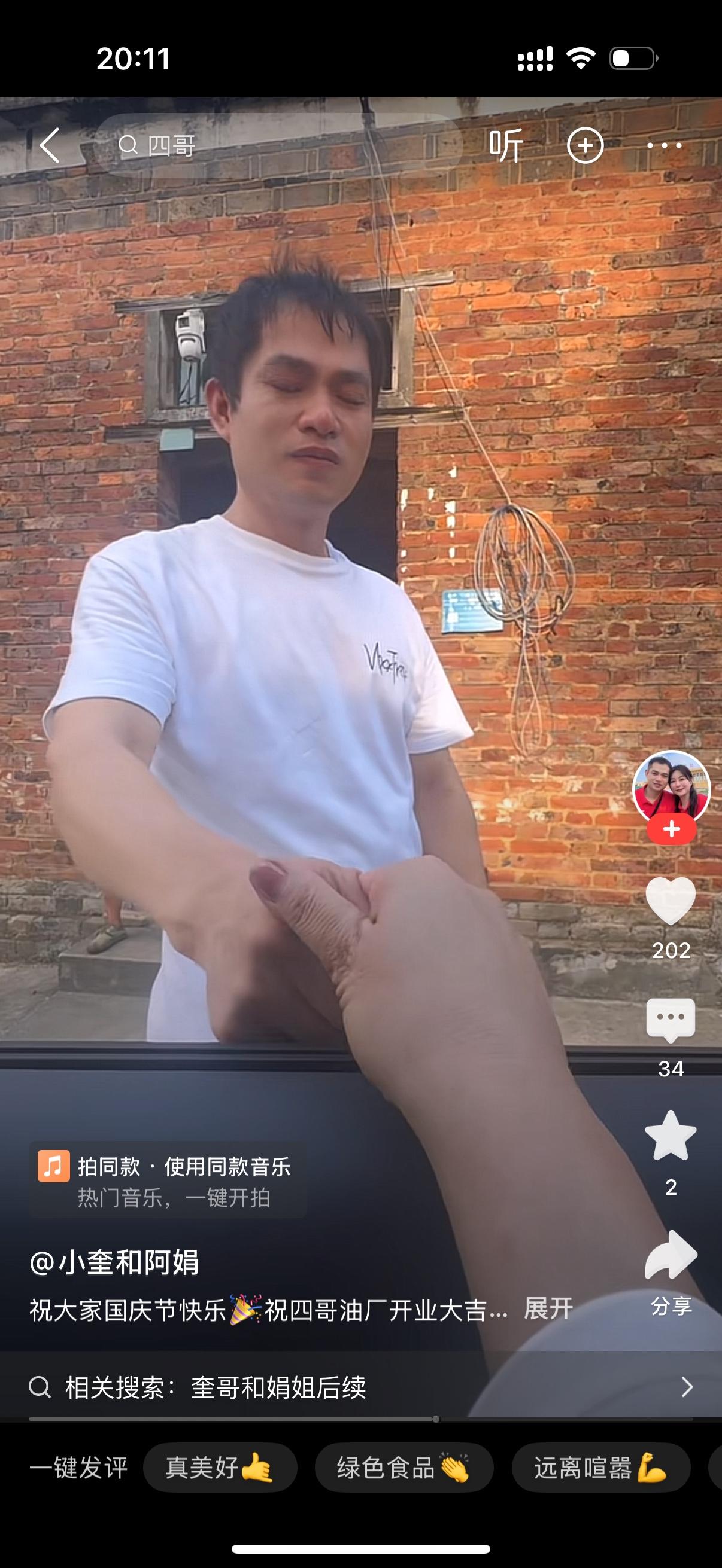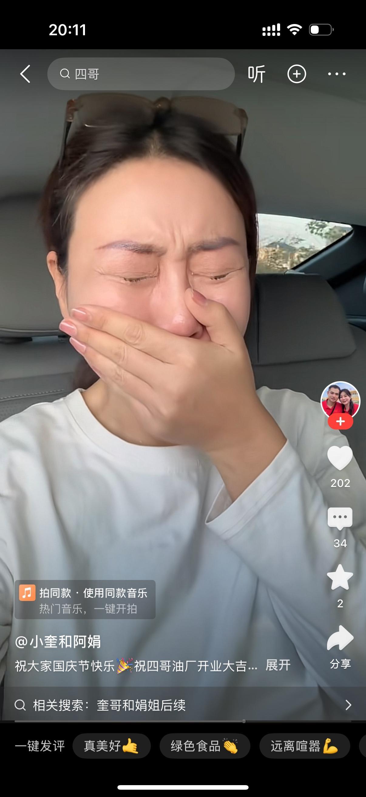 小奎和阿娟短暂的分离搞得跟生离死别一样,有点太过了吧?两个年过半百的中年夫妻像刚结婚的小年轻一样,几天的离别就受不了,真是感情深厚啊。阿娟哭成这样,莫非不想跟小奎一起了?应该不是,两个人还处在热恋期吧。