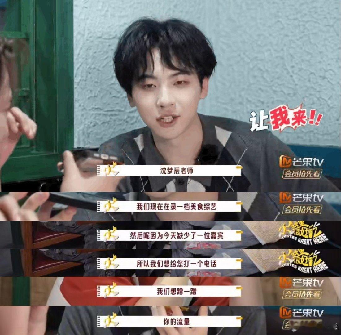 芒果艺人说要蹭一蹭沈梦辰的流量笑不活了!好吃团找沈梦辰帮忙还敢说 “蹭流量”,不过换我我也找她啊!现在梦辰控场强、路人缘好,可不就是最佳人选嘛!