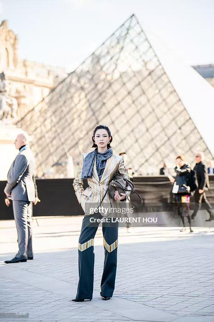 钟楚曦欧阳娜娜LV合照钟楚曦欧阳娜娜时装周合照钟楚曦与欧阳娜娜巴黎时装周合照。钟楚曦一身鎏金条纹西装气场全开,湿发背头尽显冷艳;欧阳娜娜则以金色针织上衣搭配格纹裙,甜酷兼备LV春夏26女装秀