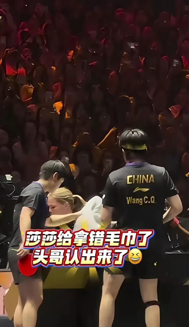 莎莎个小迷糊,拿毛巾递给她哥,结果地递错了,王楚钦走了两步发现了。 然后现场就山呼海啸,这帮观众就炸锅了! 咱就说不就是递错毛巾了,就当没看见不行吗? 这一炸锅,万一把他俩注意力给转移了,刚安排的技战术给忘了怎么办? 幸亏他俩现在都是大心脏! 他俩一有点风吹草动,球迷就炸锅,不是挨着他俩避嫌吗?