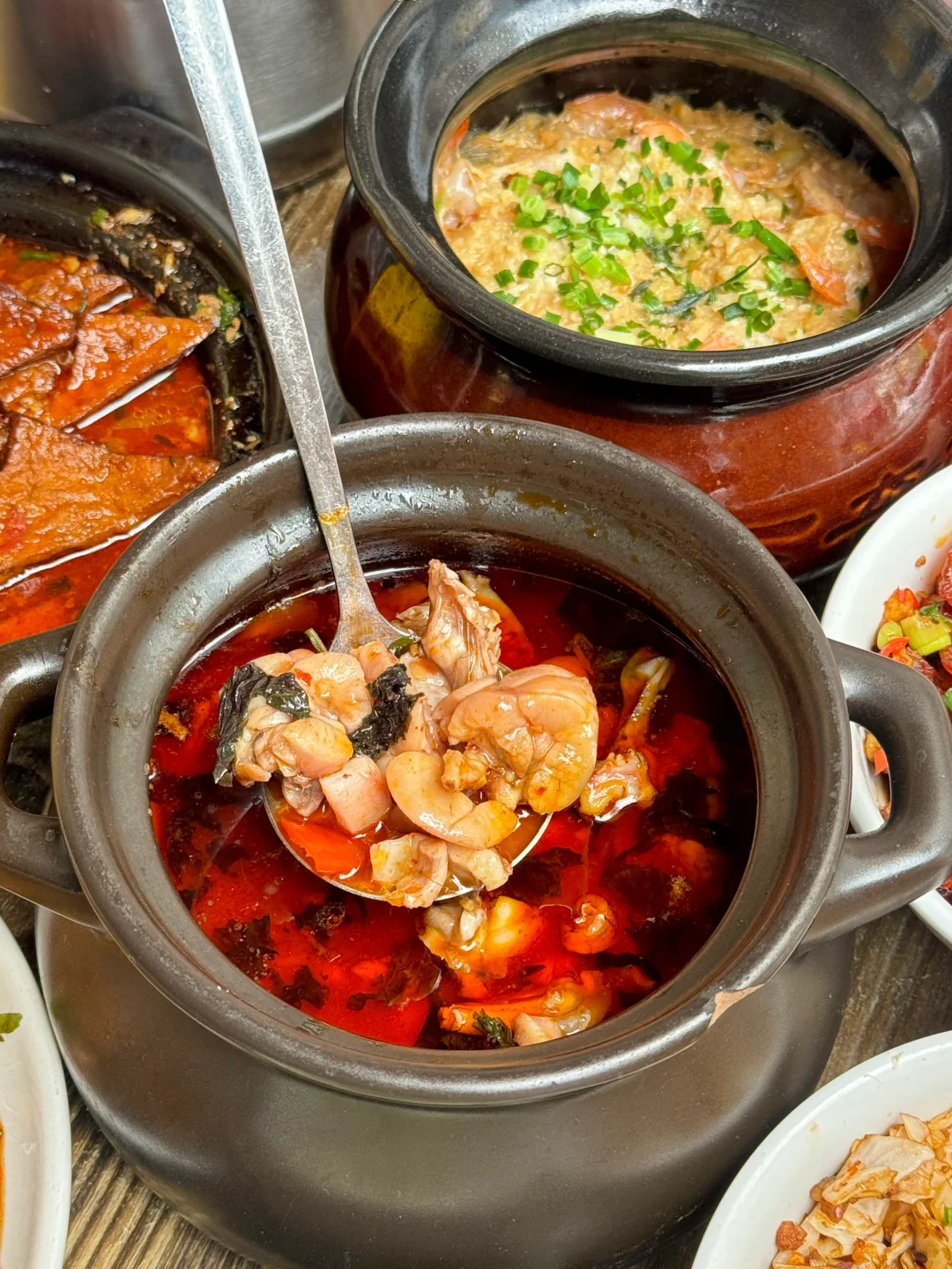 不是网红店!开了很多年了!饭点坐满了本地的嗲嗲娭毑…他们家的焖罐菜真心巨巨巨好吃!!口味真的超级丰富很有长沙特色、全部都好吃没有踩雷!! ✔️菜品推荐:猪脚、三角香干、牛蛙、腰花、手工麻辣香肠等… 友味罐庄📍地址:西长街98号、近五一广场地铁8号口。
