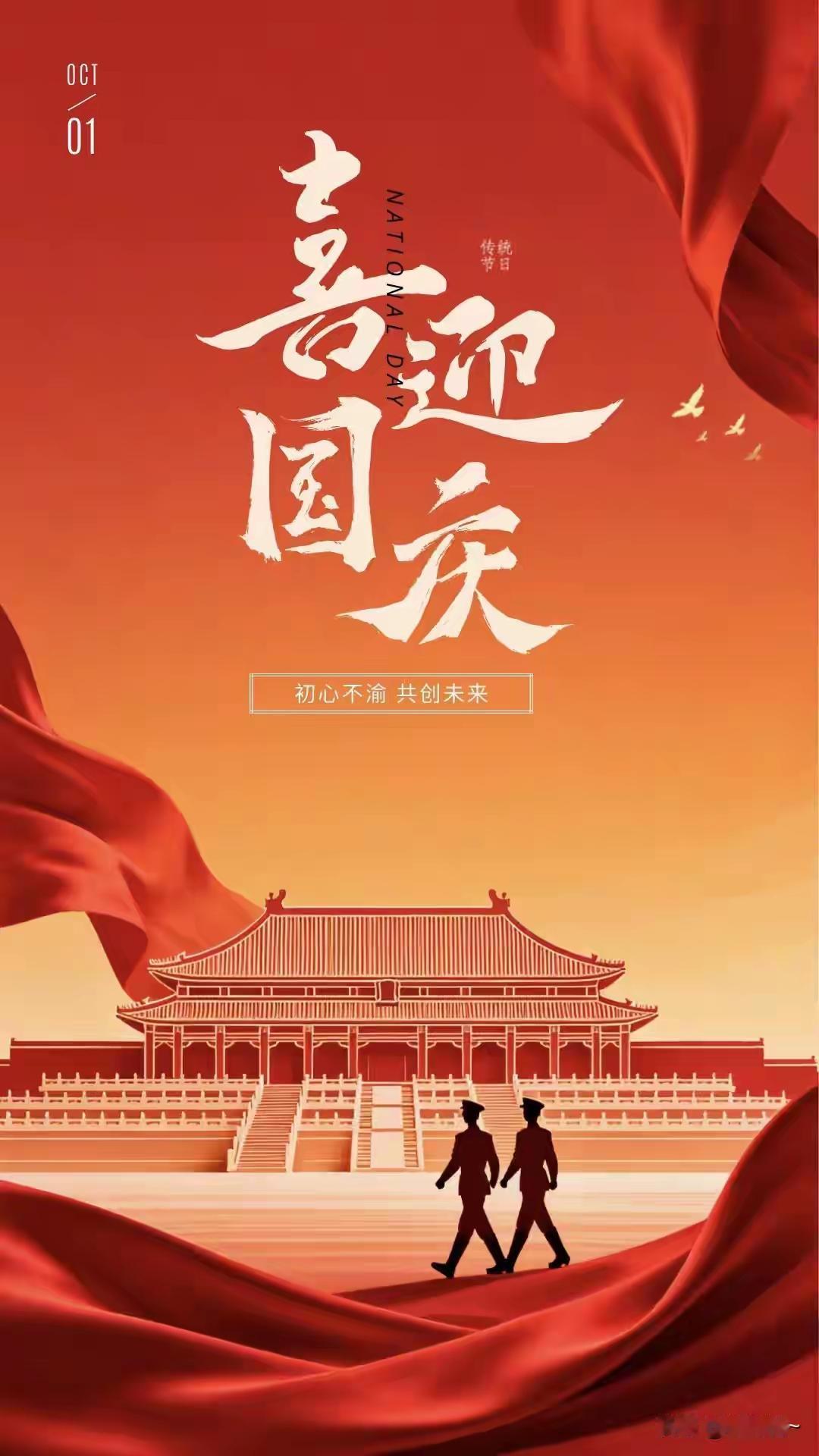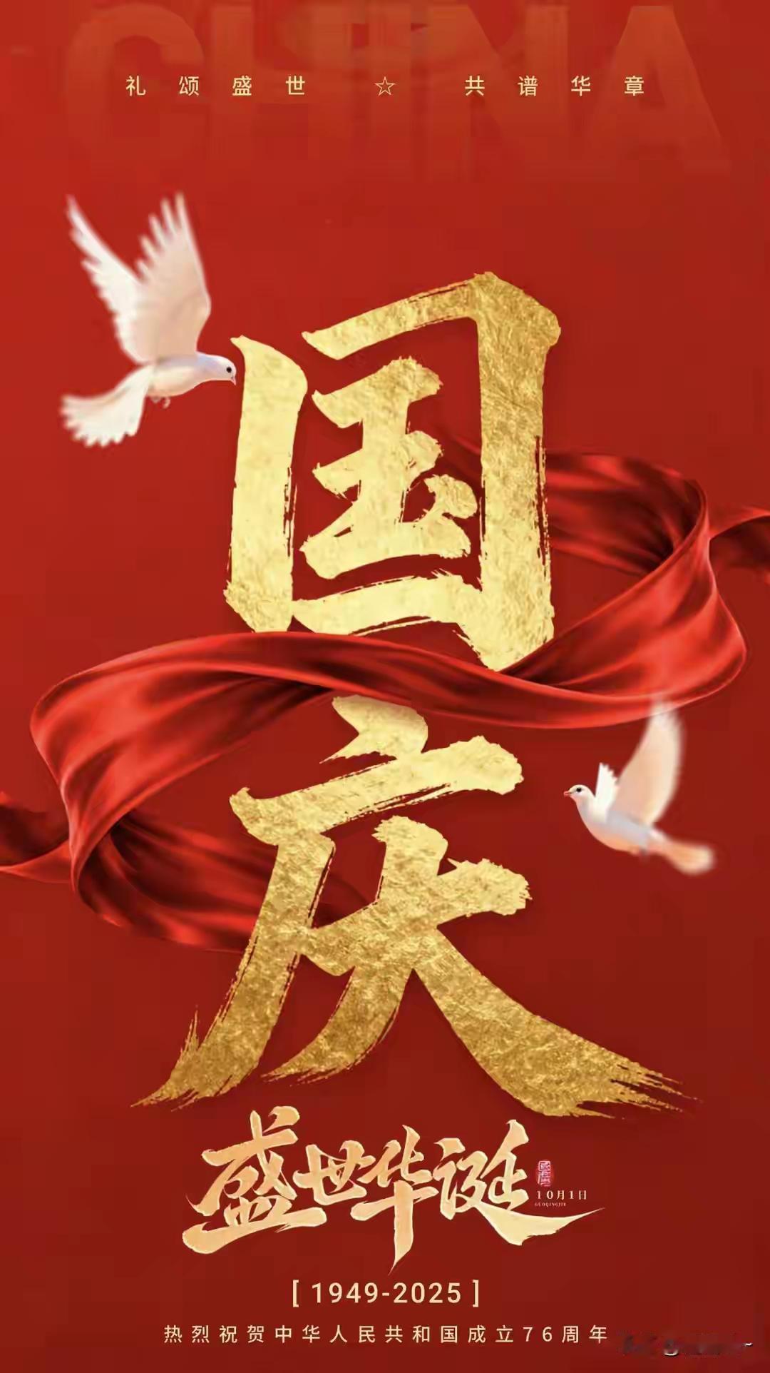 “存起来,10月第一天,请发一条不一样的朋友圈” 十月一日红旗扬,九州大地喜洋洋。 七十六载风华绽,共祝华夏永辉煌! · 敬祖国、敬理想、 敬未来、敬过往。 巍巍山河永昌,祖国繁荣富强。 金秋万里庆华诞,九州大地共欢腾。把最美的祝福送给祖国,愿山河无恙,岁月峥嵘,国泰民安! ²⁰²⁵⁄₁₀₋₀₁ 千秋作卷,山河为答, 今日国安,家圆。 ²⁰²⁵/₁₀.₁ 在我喜欢的秋天,有着最耀眼的中国红。恭祝祖国76周年华诞。 网友评论: 敬祖国、敬理想、 敬未来、敬过往。 巍巍山河永昌,祖国繁荣富强。 《颂伟人》 建国开篇世无双, 毛公筹策谱新章。 华夏重开新日月, 山河尽换旧时装。 军民自此齐心聚, 一路驱驰向曙光。 共和肇始人民庆, 青史留名万古芳。 把美好的祝福,献给伟大的祖国一一一我的母亲。 与国同庆,与时代同行, 愿家国皆安,岁月皆欢。