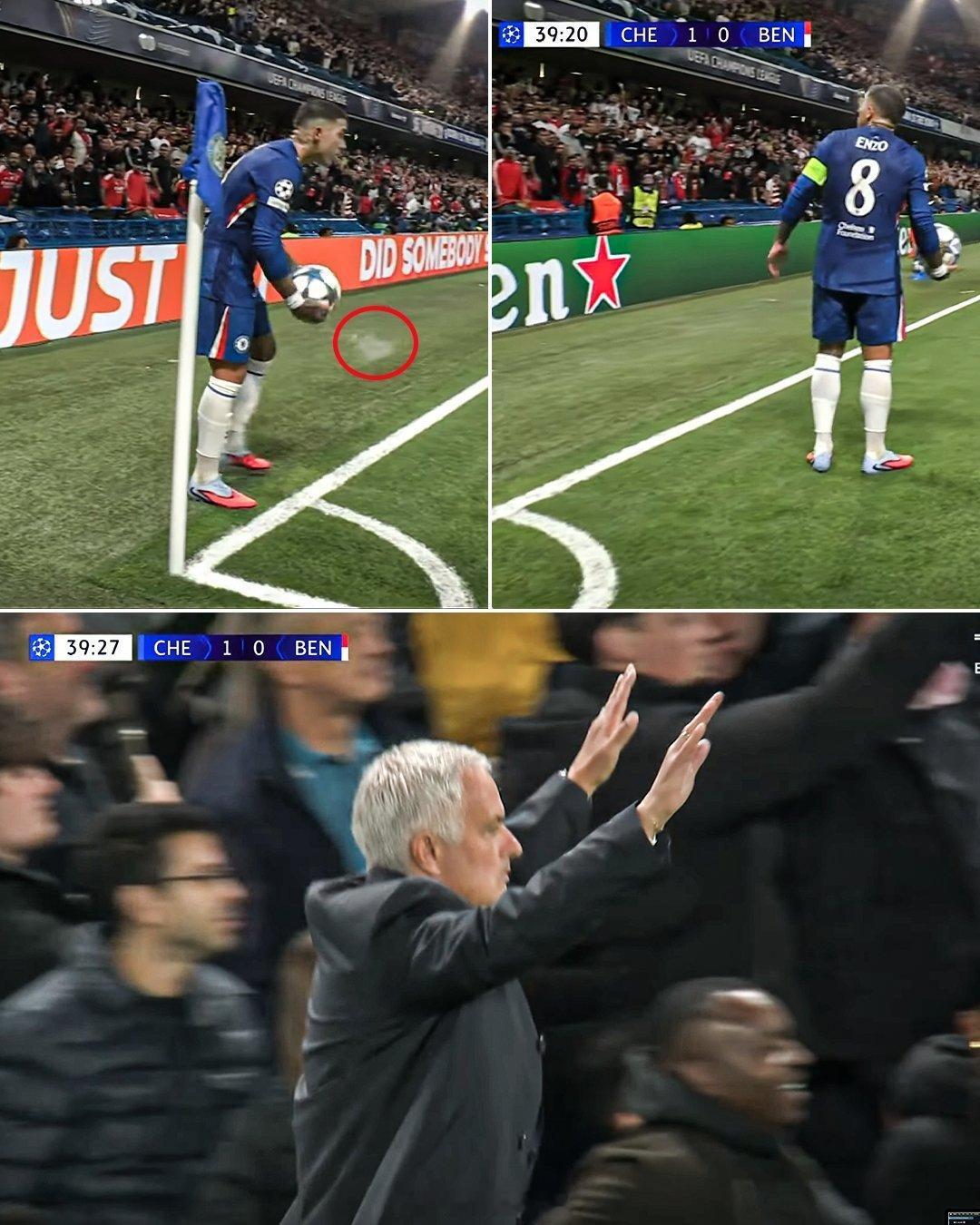 切尔西1比0本菲卡 这是发生在切尔西对阵本菲卡的欧冠比赛中的一幕 : 恩佐·费尔南德斯遭到本菲卡球迷的嘘声,他在角球区以掌声回应。葡萄牙球迷开始向这位前球员投掷物品。何塞·穆里尼奥注意到了这些,立即要求本菲卡球迷停止向这位世界冠军投掷物品。