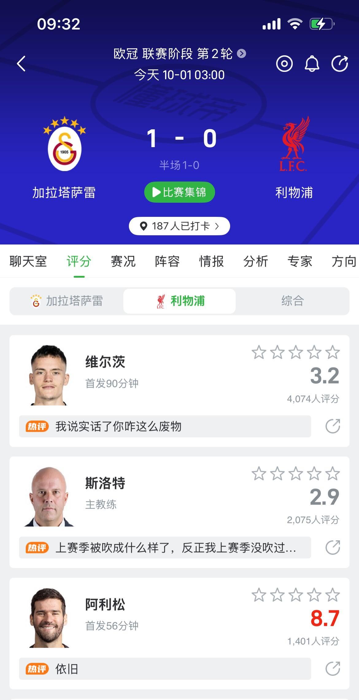 欧冠利物浦爆冷0比1输给加拉塔萨雷。有人说利物浦又大意了,不太同意这个说法,利物浦这个赛季到目前的问题很多,输球正常。 英超开赛五连胜的时候就已经暴露出来很多问题了,这么豪华的阵容,居然每次都要靠球员的灵光一现绝杀来终结比赛。利物浦教练根本没有发挥出阵容该有的水准,跌跟头是迟早的事情。 萨拉赫又老了一岁,进攻状态下滑,防守几乎没有,弗林蓬右路防守压力大,进攻能力无从发挥,右路攻防机会瘫痪。 左路加克波的内切和防守尚可,但没有迪亚斯的爆点作用。左右两边的进攻都不行,无论是埃基蒂克还是伊萨克能力都无从发挥。 维尔茨无论放在哪个位置都不行,没突破,没防守。迈巴赫组合实力还在,目前的成绩全靠这三位,随着赛季的深入,各球队发现左右进攻不得行,中路还可以,那就收缩防守,坚决打反击。 总之,利物浦的阵容是存在问题,中锋和中场是豪华的,主力和替补阵容实力都够。中后卫和左右边锋问题很大,尤其是替补阵容很强很弱。维尔茨的问题是无解的,这么贵的引援不让上场,斯洛特很难!#利物浦最佳阵容# #利物浦转会# #利物浦水货# #利物浦高层#