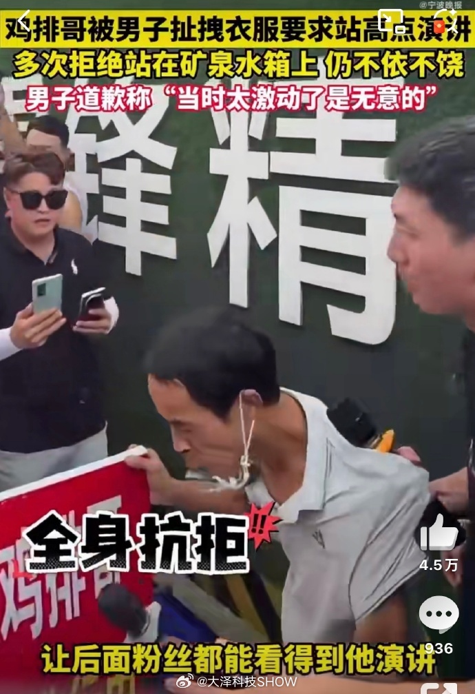 鸡排哥被男子扯拽衣服要求站高点演讲看了半天也没看见鸡排啊……再说了,现