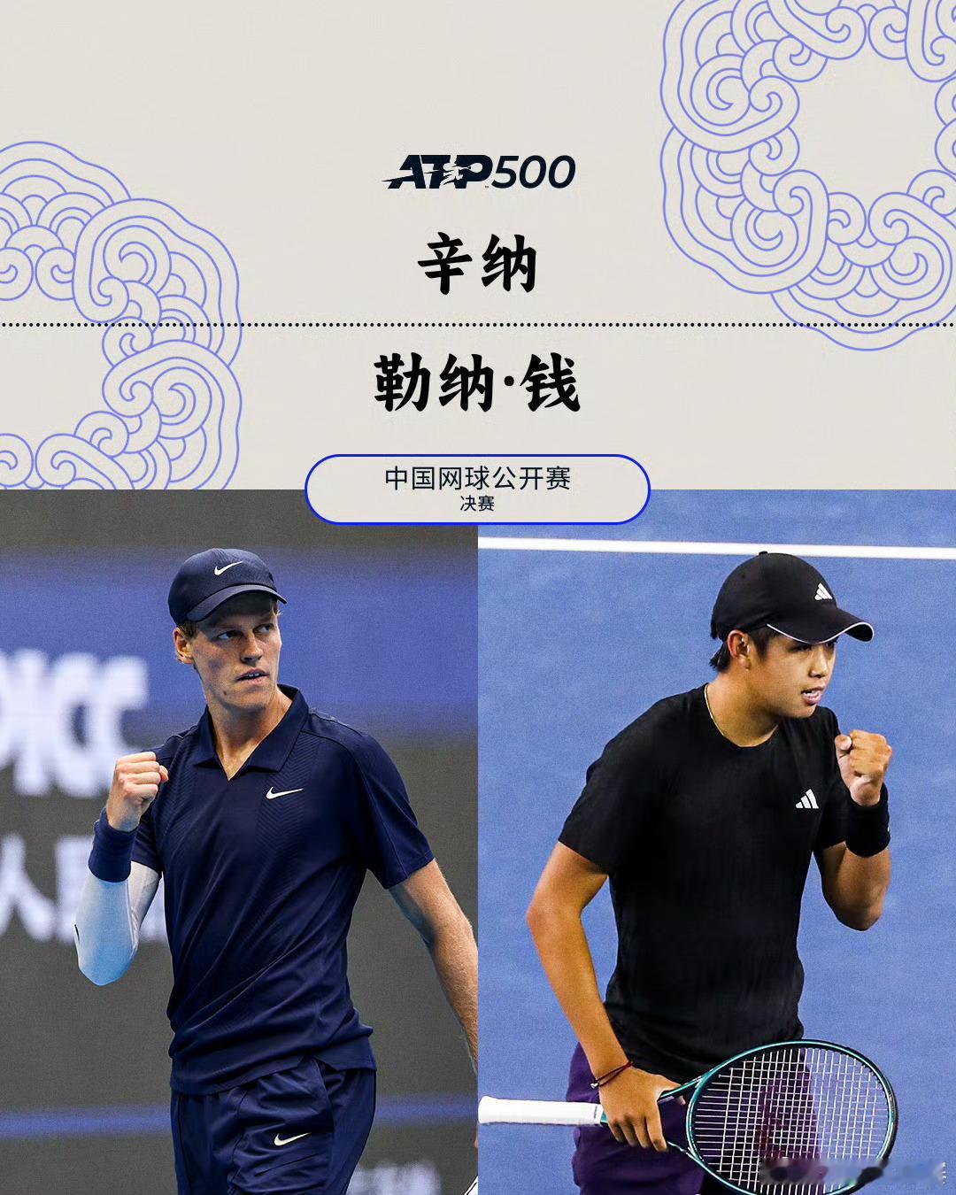 北京时间不早于今天14:00,辛纳和勒纳·钱两位选手将在男单决赛争夺冠军奖杯!
