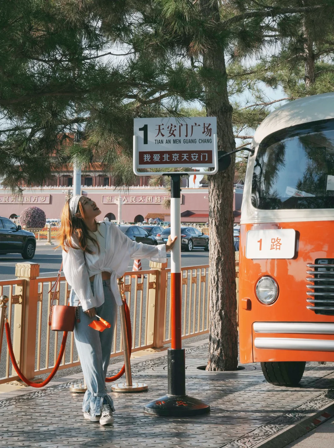 ✅新晋机位:快下地下通道时的栏杆处可以拍到车水马龙和远处的天安门,加上滤镜回忆的年代感拉满