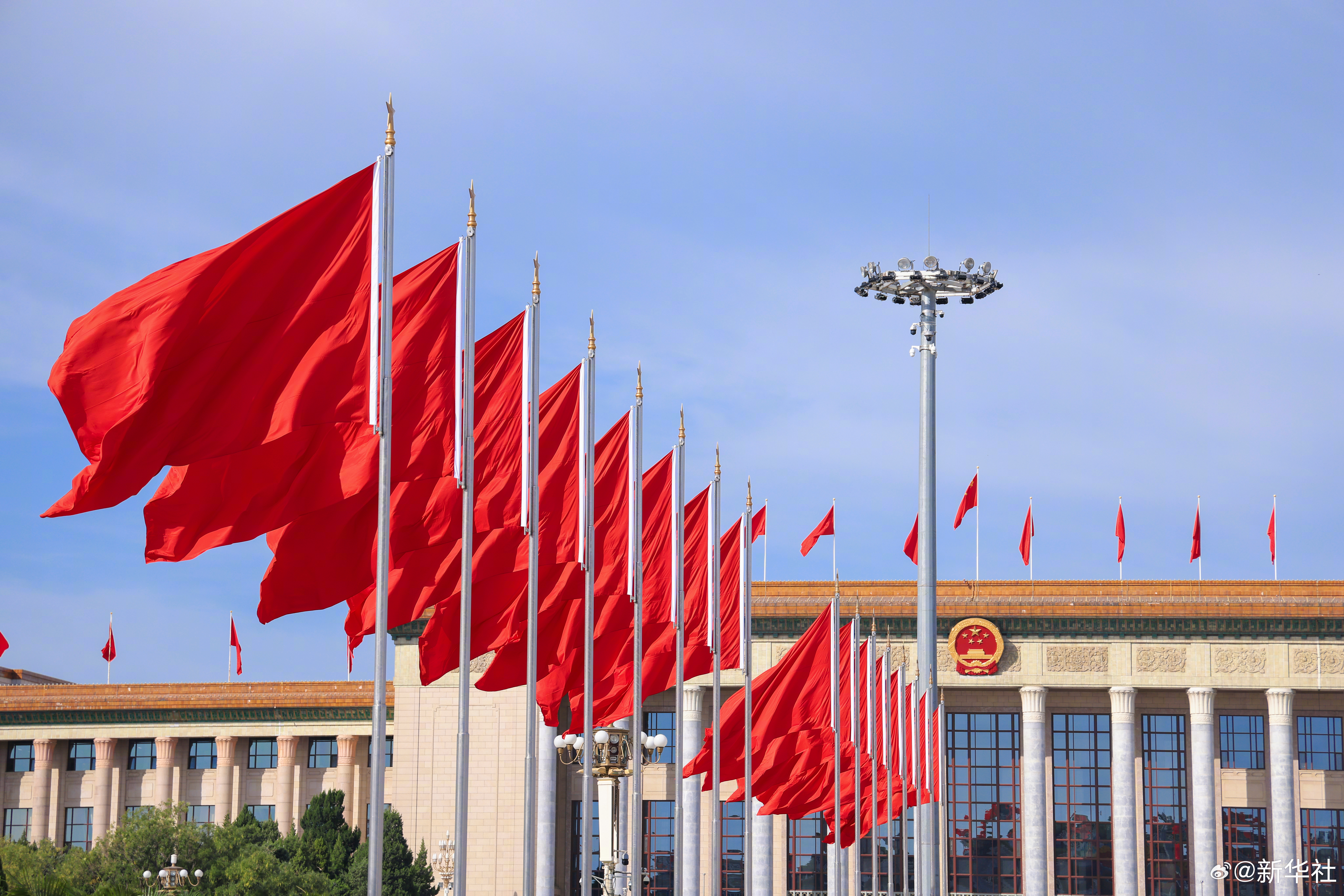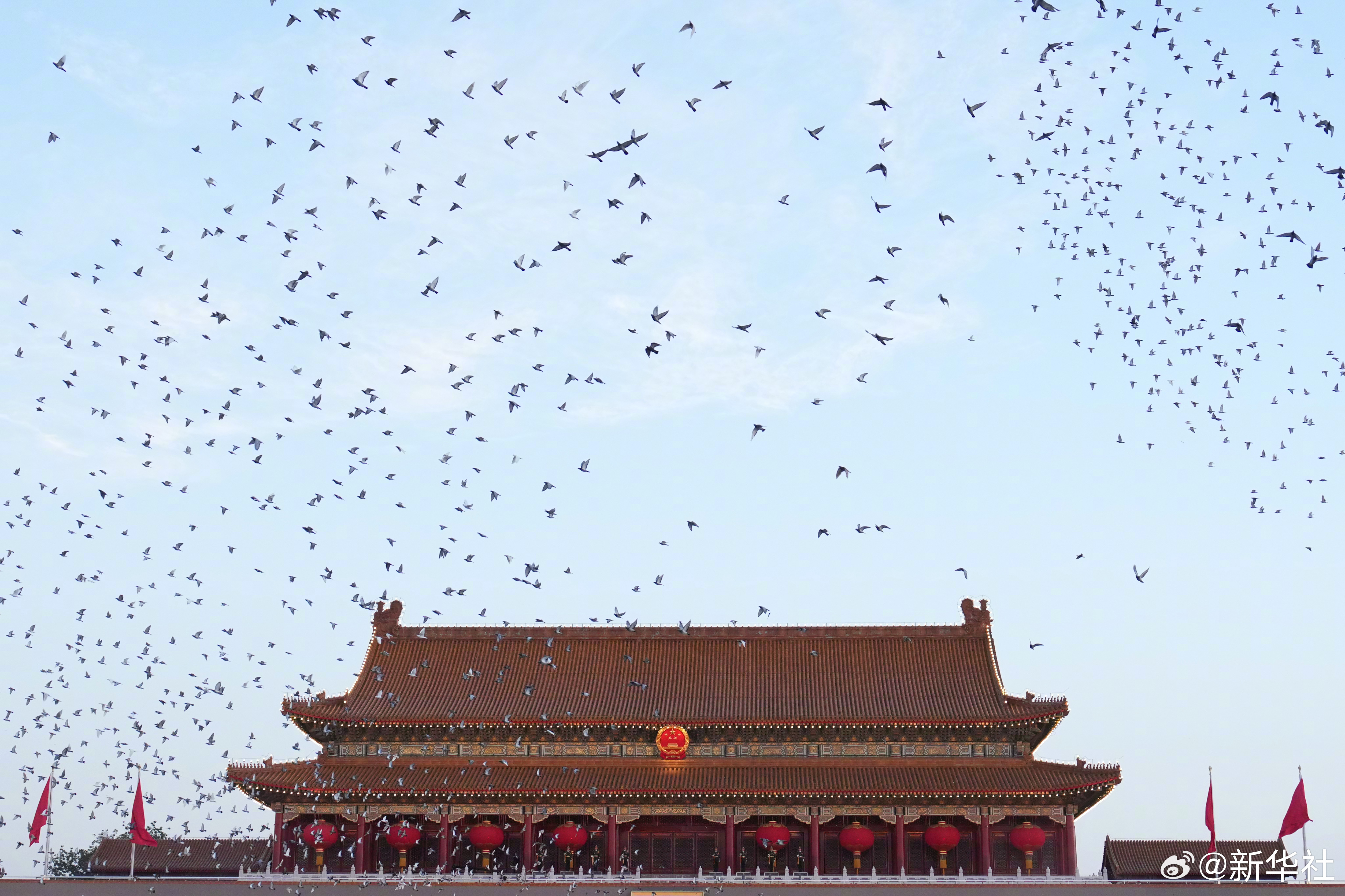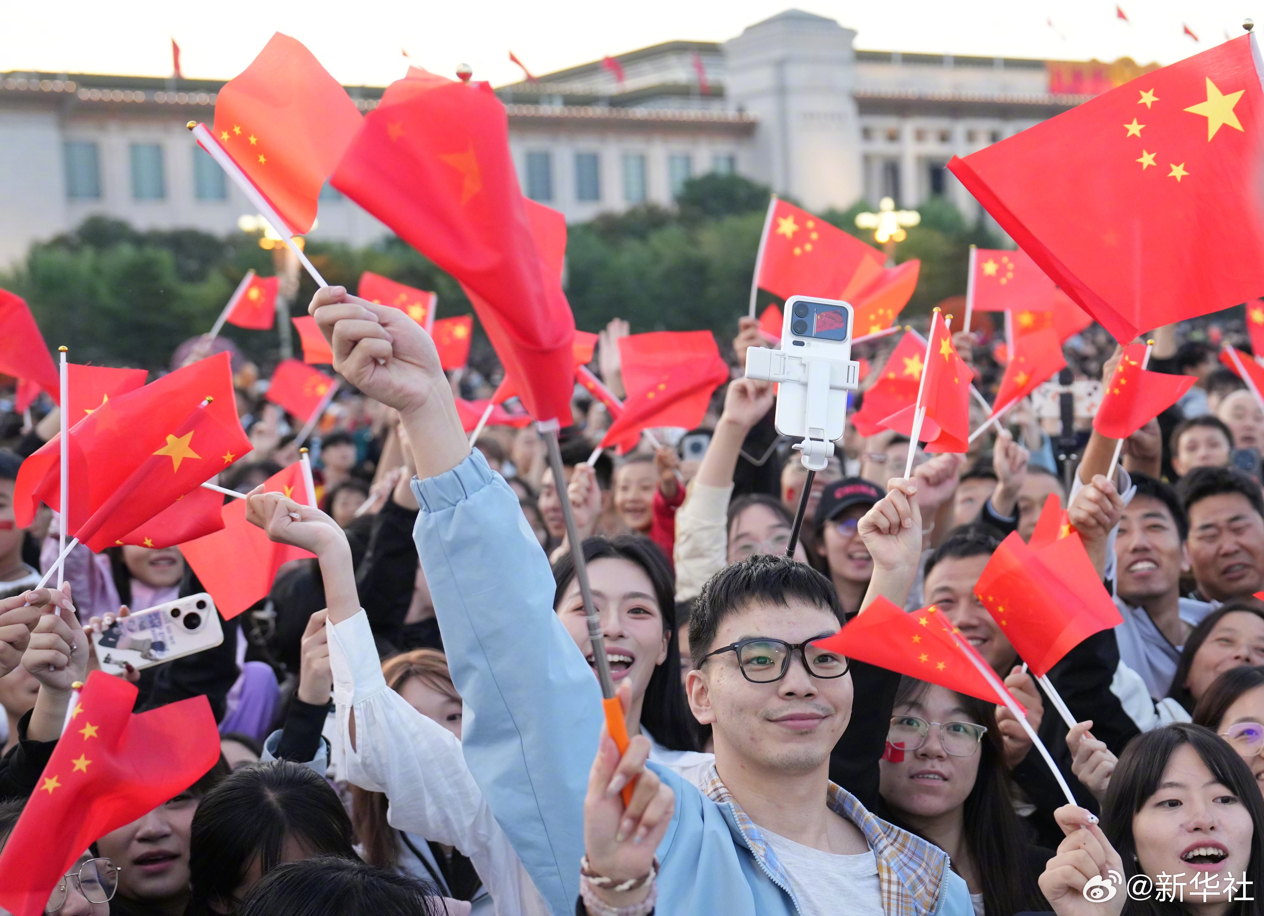 【#看升旗是中国人专属仪式感#】这一刻,千万道目光在此交汇,千万颗心在此同频!晨光之中,五星红旗迎风飞扬,与天边朝霞共绘最美中国红。