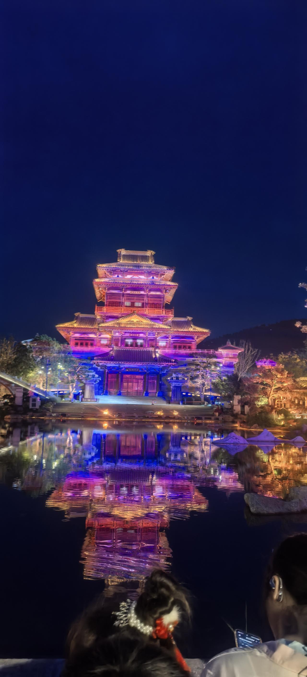 家人们给你们讲讲我这次超绝的旅游!晚上去了那个超有名的地方,就瞅见一座古建筑,在灯光下边美炸了!五彩的光打在楼阁上,红的、紫的、蓝的,互相交织,倒映在前面的水里,简直是双倍好看!我和朋友站在水边,眼睛都看直了,感觉穿越到古代啥啥盛景里了。周围人也不少,大家都在哇塞,这一趟真值,眼睛吃了顿大餐,下次还得这么玩!