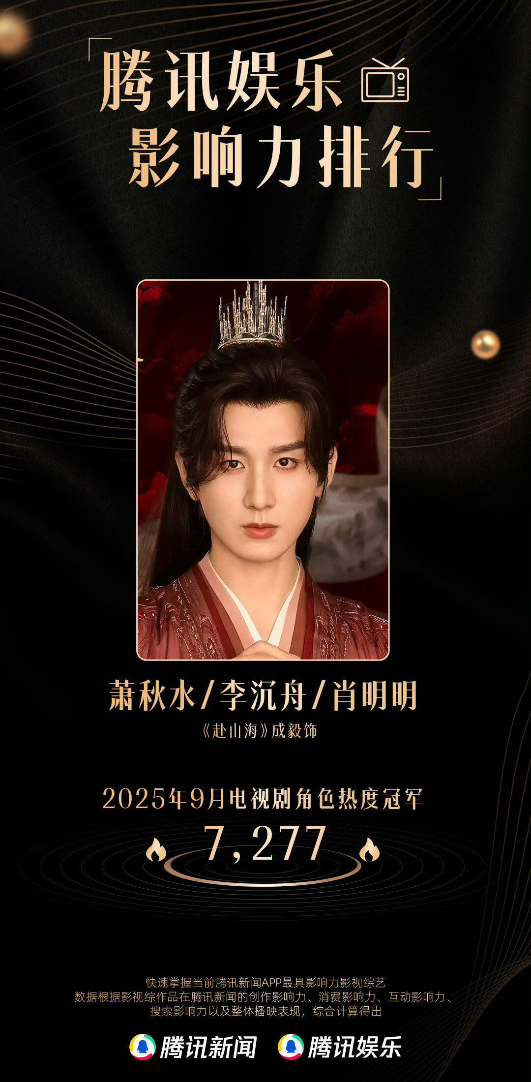 成毅的《赴山海》这个热度什么水平?[思考][思考][思考]赴山海成毅9月热度双冠成毅萧秋水角色热度持续霸榜