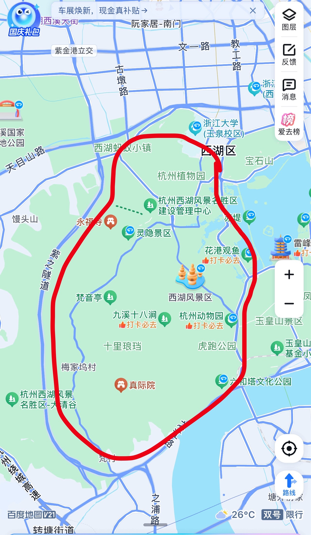 重点:西湖核心景区尽量不要开车前往,一是太堵了,还有就是停车费真的很贵