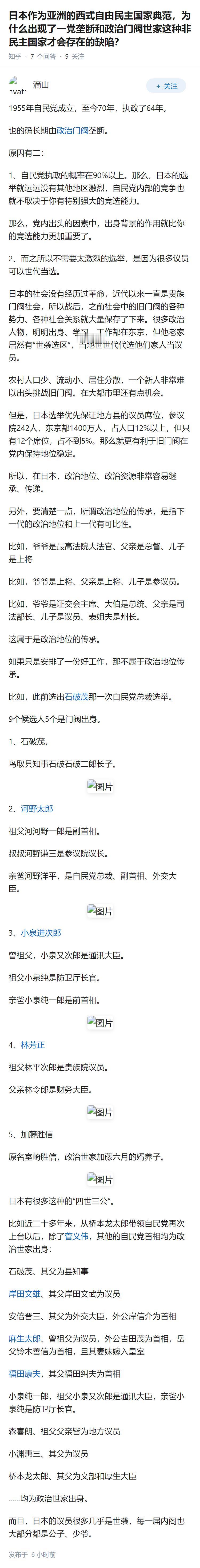 日本作为亚洲的西式自由民主国家典范,为什么出现了一党垄断和政治门阀世家这种非民主国家才会存在的缺陷?