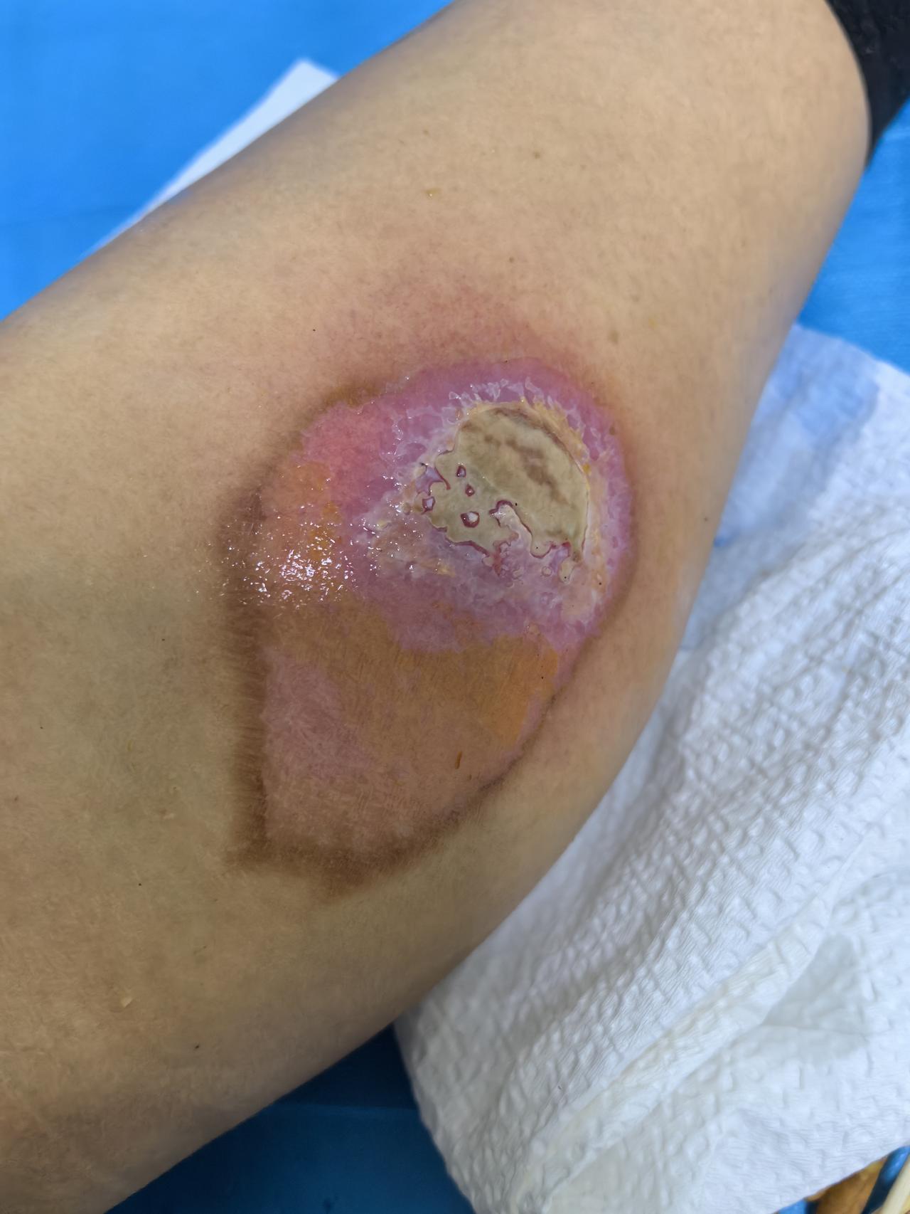 没有麻药,直接刮掉腐肉,什么感觉? 疼,疼的直接昏倒,下嘴唇都咬破了皮,衣服汗湿完了。 医生吓坏了,赶紧量血压,让我躺下放松,除了心率110其他都还好,给我喂糖水含了一颗硬糖果,躺了五分钟才缓过劲来。 医生问,能不能坚持?那不刮肉了好吧,你这疼的受不了,今天就揭掉三块腐肉,我先给你用消炎药水冲洗,再用双氧水清理,最后再用祛腐生肌膏涂抹,这几天请每天来清创吧。 我说,让我缓缓咬牙再继续。 不得不夸一下中医院自制的祛腐生肌的药膏,确实有用,第一天涂抹后,伤口上的结痂全部掉了,便于医生操作刮掉腐肉。 换药第二次了,晚上能让我睡了一大觉,居然不那么疼了,实在是太开心了,期待今天下午的第三次换药后,开始长新肉,快点好起来。 哎,我这腿跟着我造老罪咯。