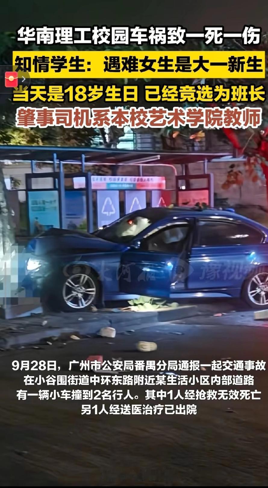 再发通告!华南理工大学校内开车撞人后续来了! 肇事者系艺术学院老师金某,校方将全力配合公安机关查清此事,依法严惩肇事者,还受害学生一个公道!并将加强校内安全隐患排查,切实筑牢校园安全防线! 屏幕前的你们怎么看?欢迎在评论区留下你的看法。高校事故 华工车祸 高校汽车撞人 大学交通事故