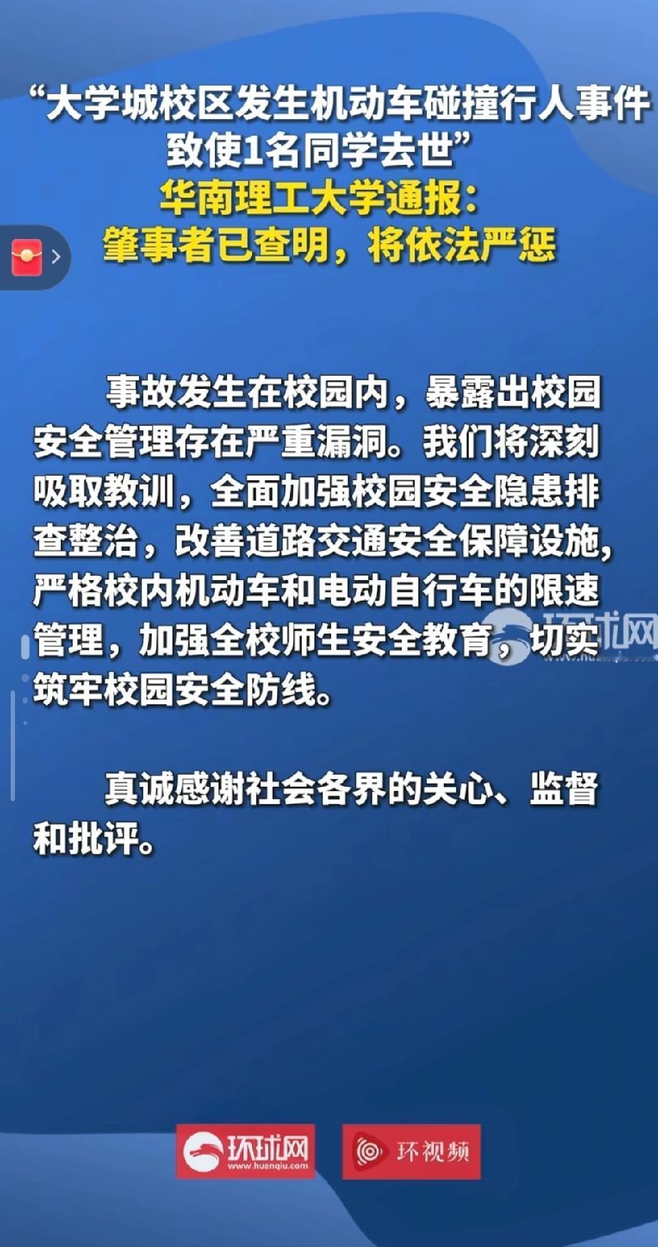 再发通告!华南理工大学校内开车撞人后续来了! 肇事者系艺术学院老师金某,校方将全
