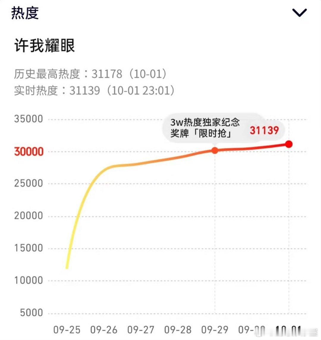许我耀眼热度破31000,真空降,主演还没法在同平台剧宣的情况下,成绩耀眼成这样!! 许我耀眼热度 ​​​