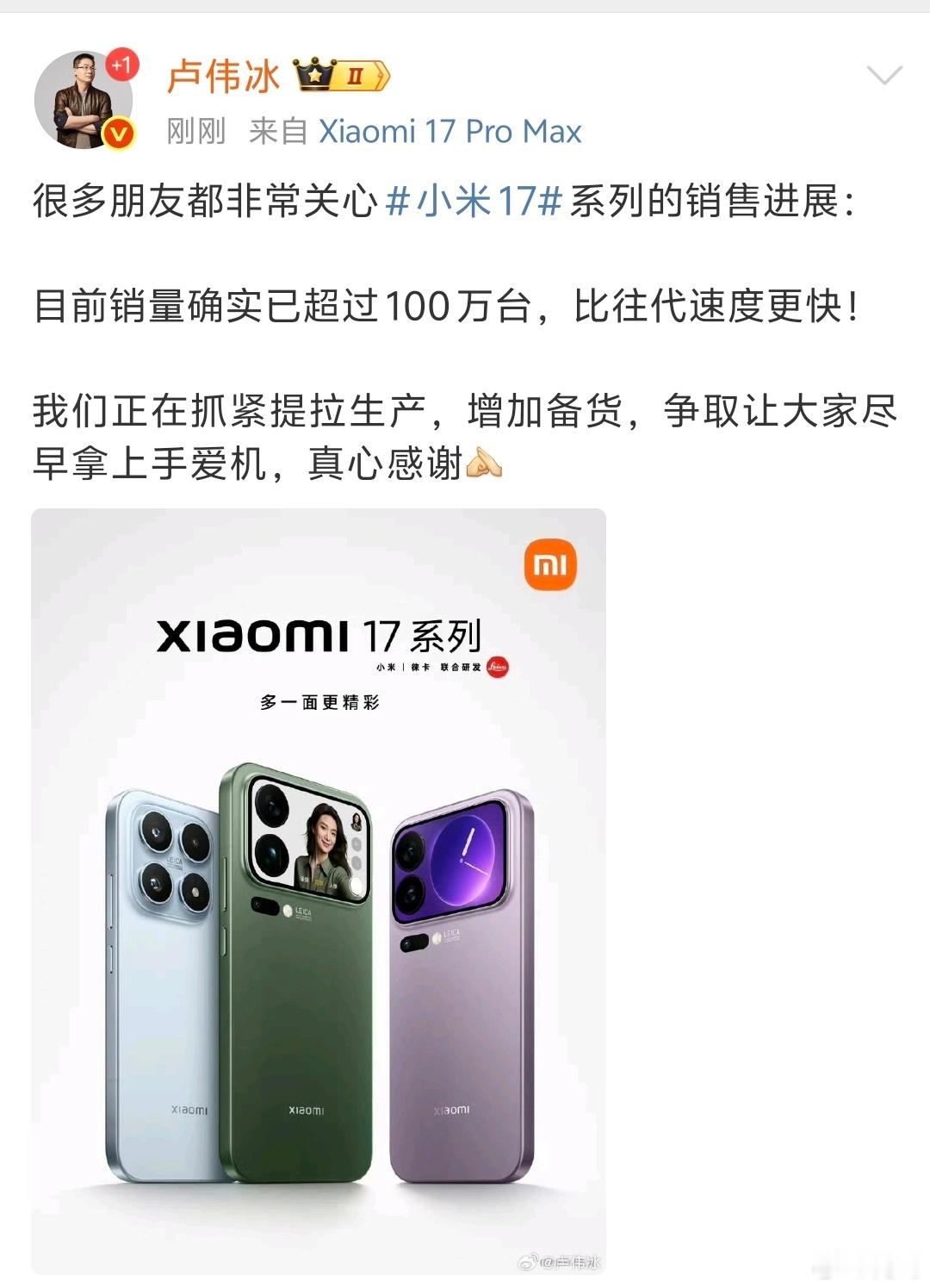 小米17系列销量破百万了,友商都错过了国庆,现在是苹果&小米表演的专场[doge]
