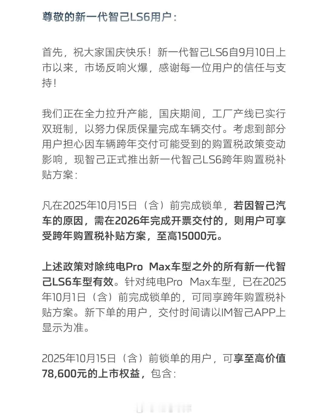 智己 LS6 也兜底 2026 年购置税了,大家猜猜下一个会是谁?