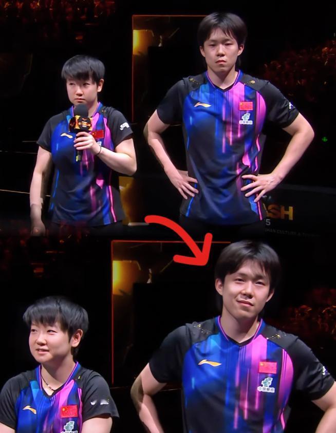 莎头混双赛后采访 记者给莎莎出了难题 莎莎反手夸起了大头?记者提问孙颖莎:对于这