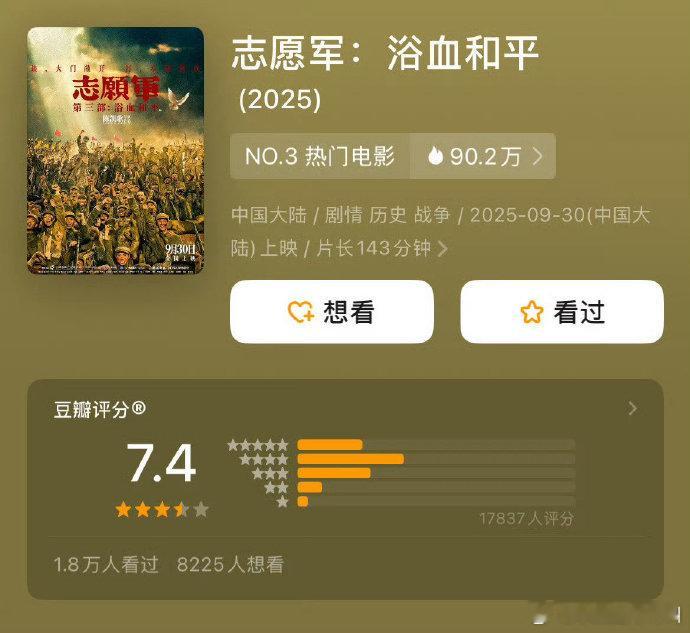 张子枫、宋佳《志愿军:浴血和平》开分7.4分