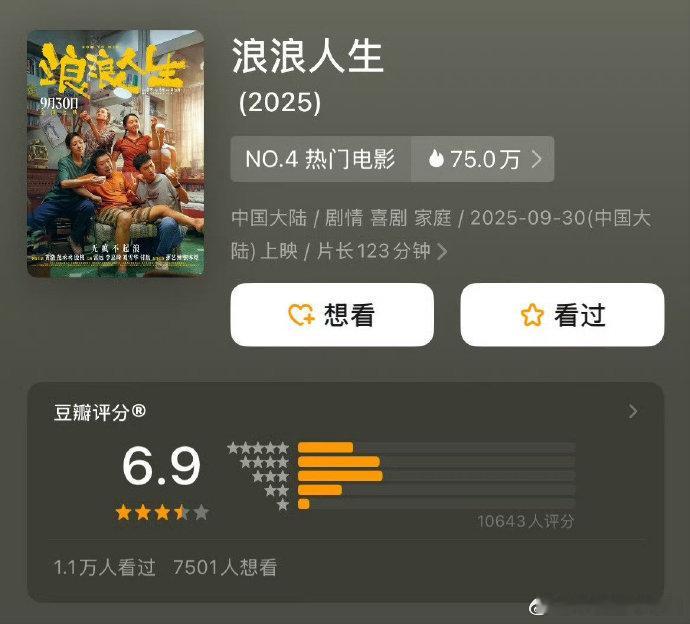 黄渤、范丞丞《浪浪人生》开分6.9分