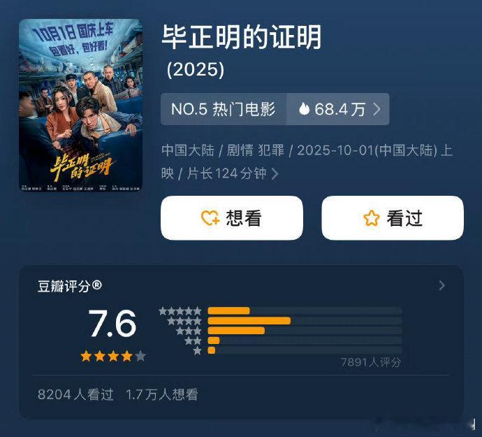 国庆档五部电影豆瓣开分王安宇、张天爱《毕正明的证明》开分7.6分张子枫、宋佳《志