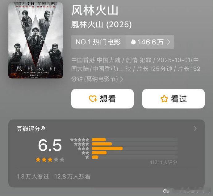 金城武、刘青云《风林火山》开分6.5分 ​​​