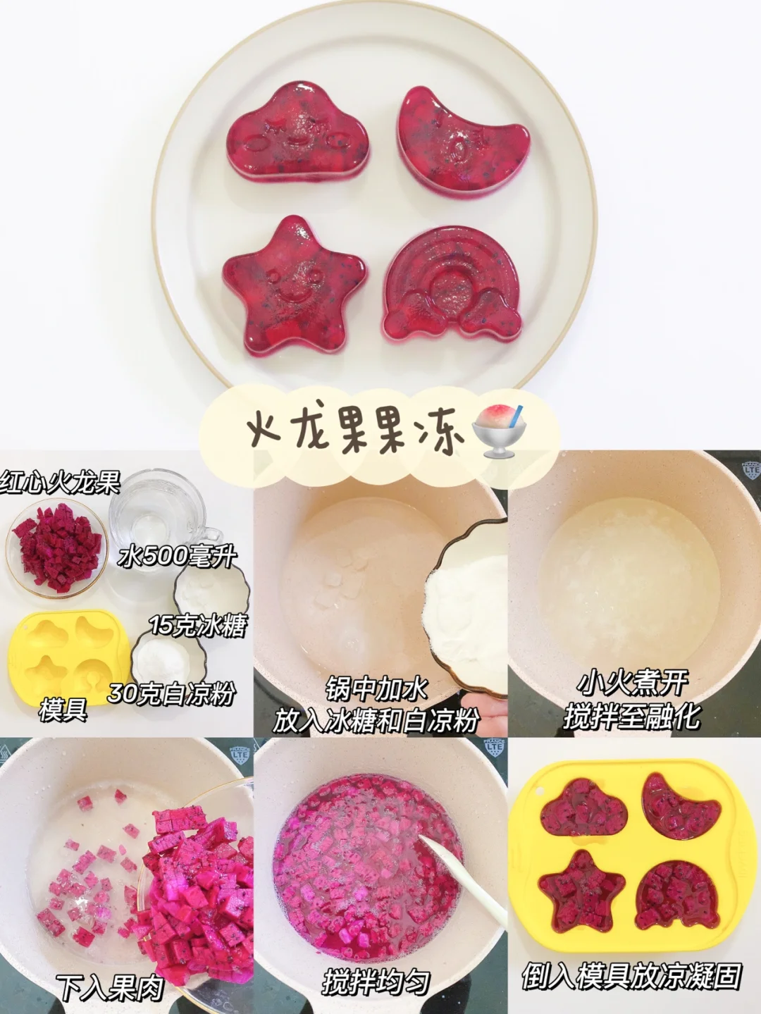 💕食材:红心火龙果、500毫升水、15克冰糖、30克白凉粉