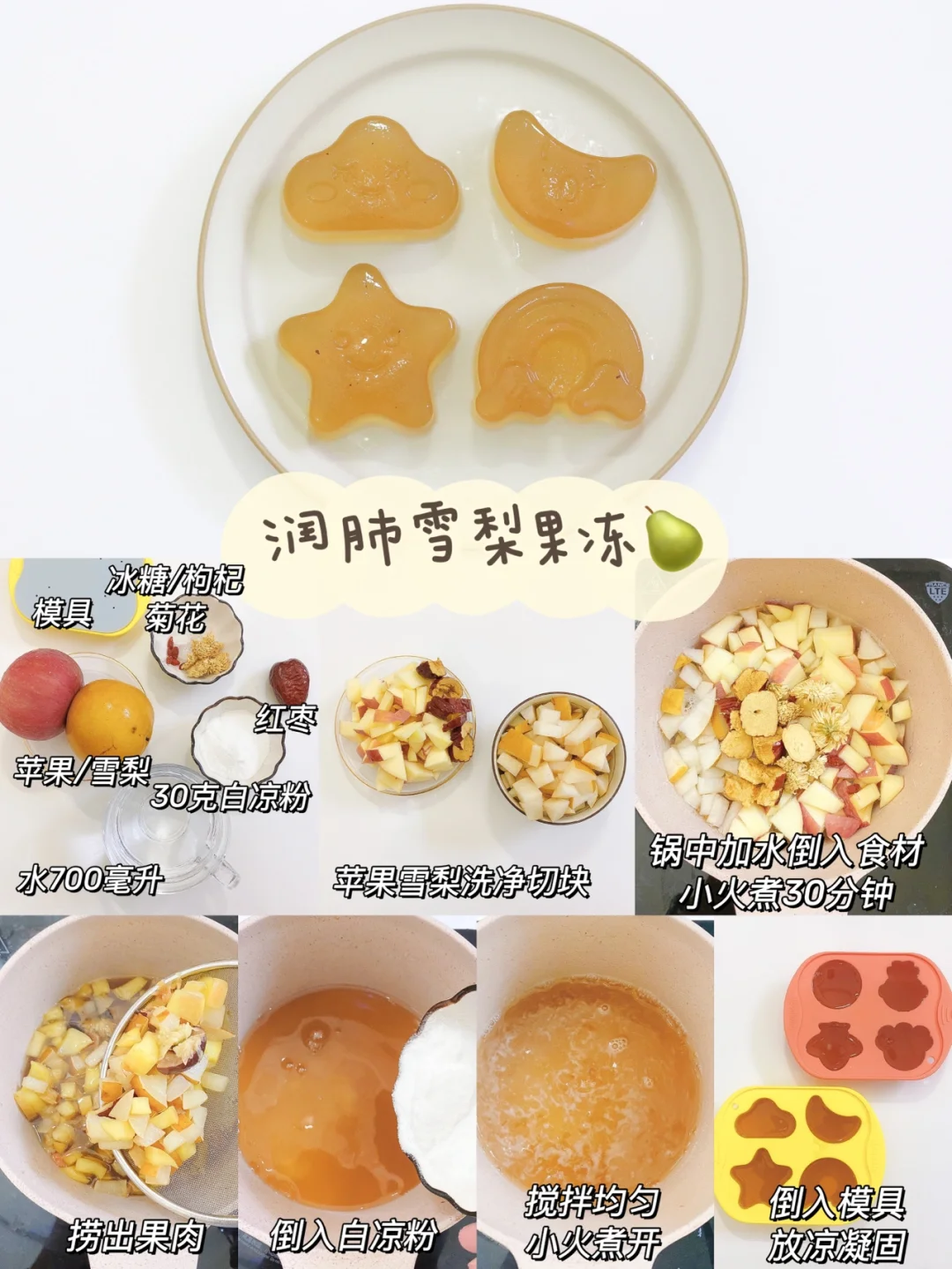💕食材:苹果/雪梨、冰糖/枸杞/菊花/红枣、30克白凉粉、700毫升水