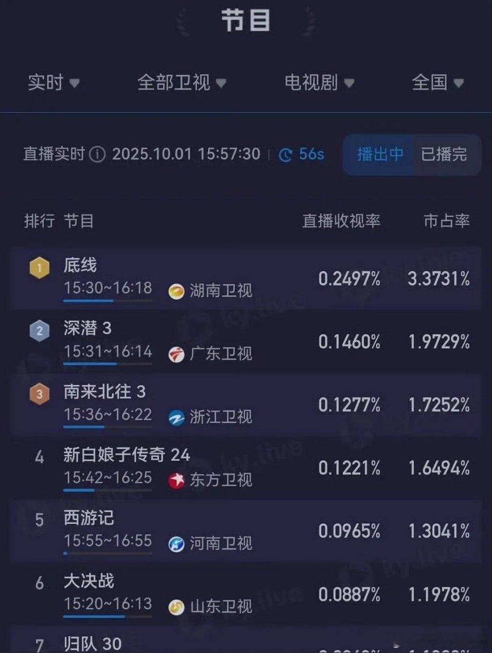 成毅《深潜》和《底线》国庆节湖南和广东卫视重播收视率又占卫视前二,好有实力 观众们都喜欢看成毅的剧