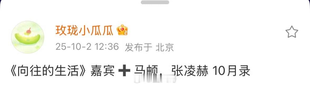 没想到《向往的生活》节目组,居然喊来张凌赫录节目了啊!网传张凌赫将在10月录制综艺《向往的生活》,一起来蘑菇屋的还有,刚和李纯官宣结婚的马頔,期待大帅哥张凌赫在节目中的表现啦!