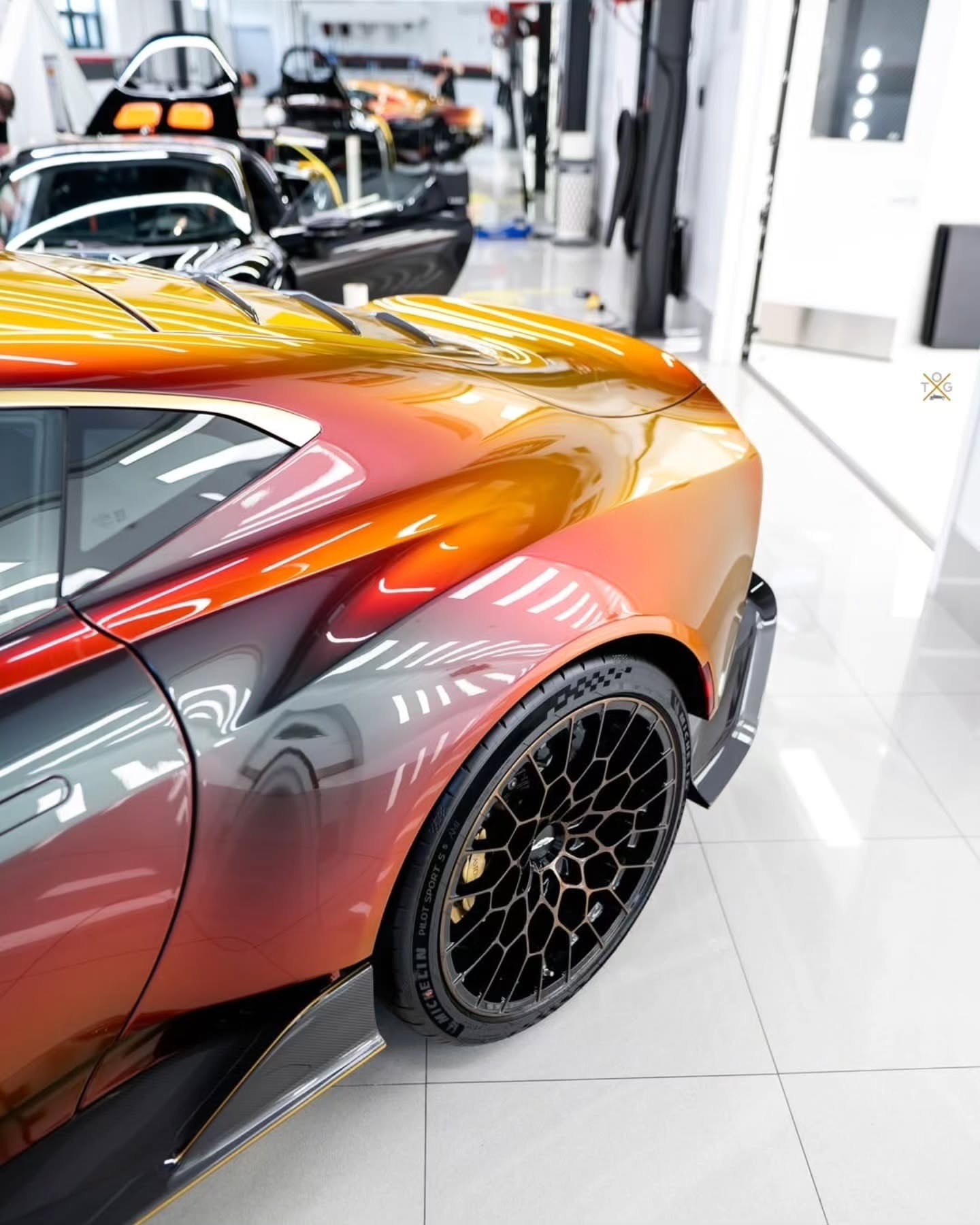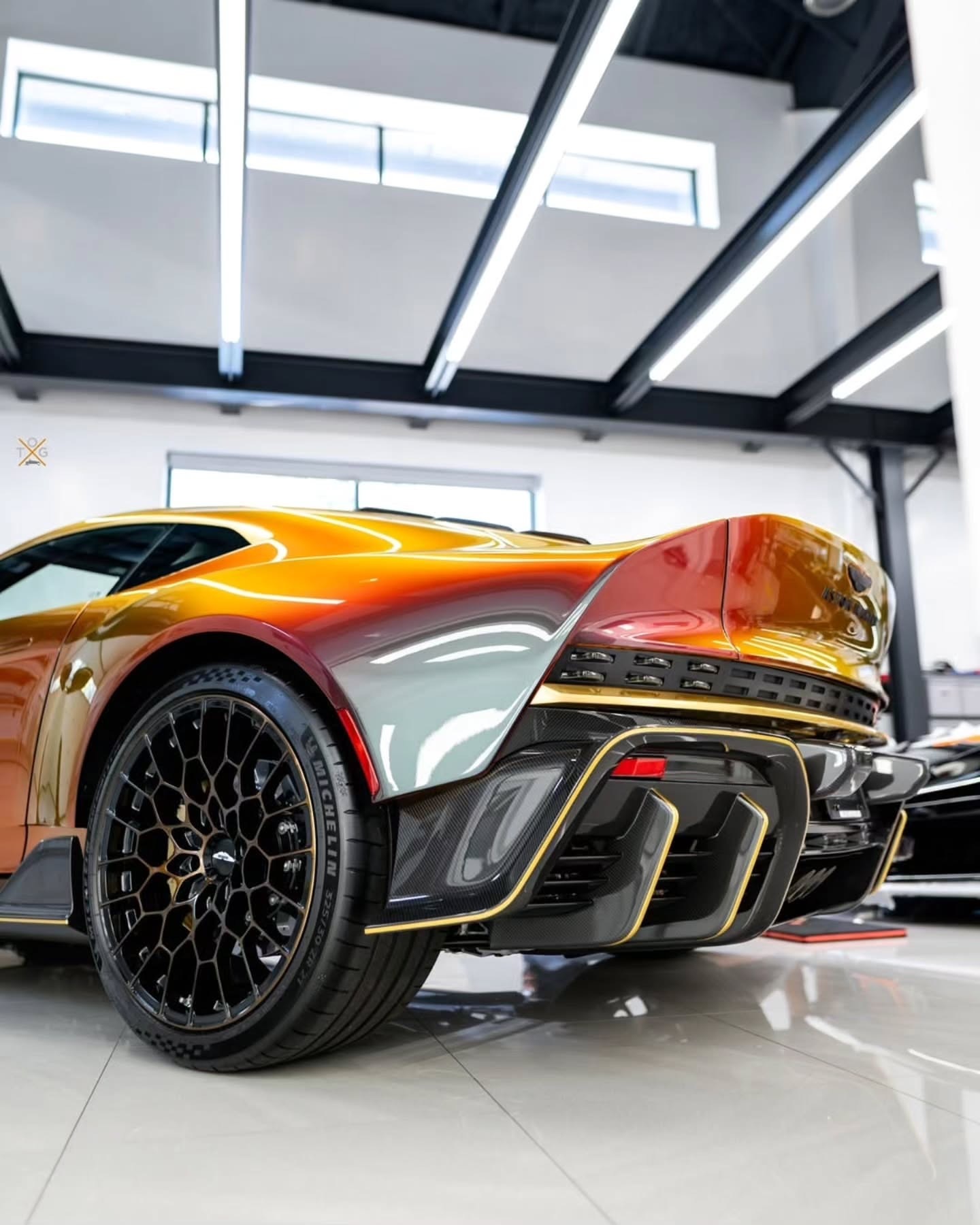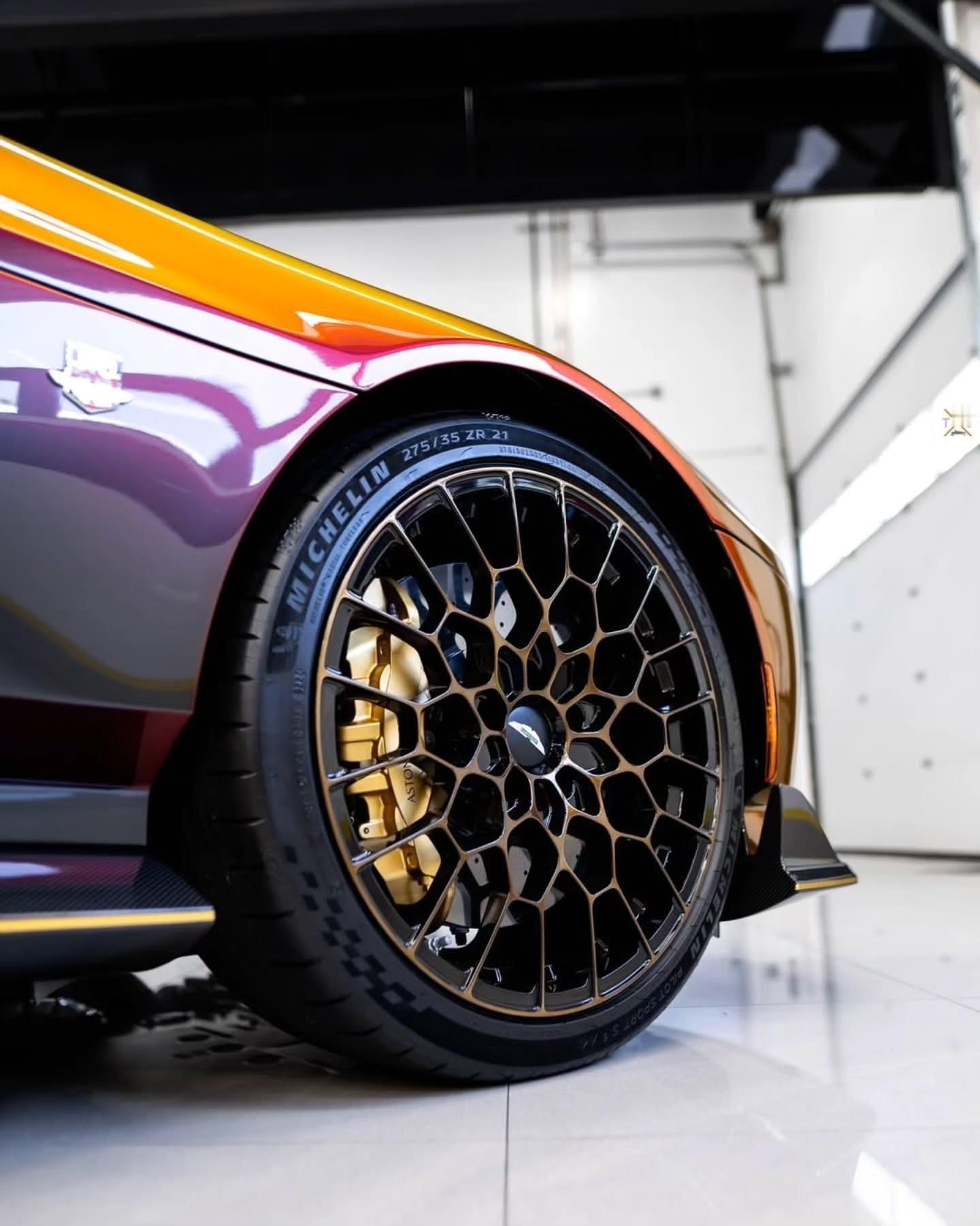 阿斯顿·马丁Valour是对品牌前引擎V12血统的罕见庆祝,限量生产,仅配备手动变速箱。在此处以安德里达红完成涂装,金属漆突出了每一个边缘和曲线,让Valour拥有更加戏剧性的存在感。
