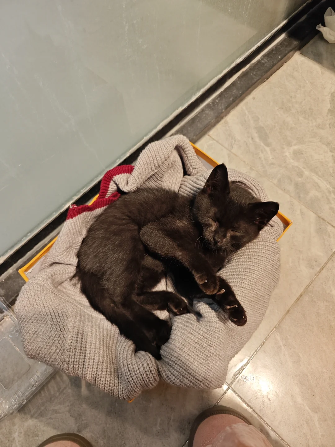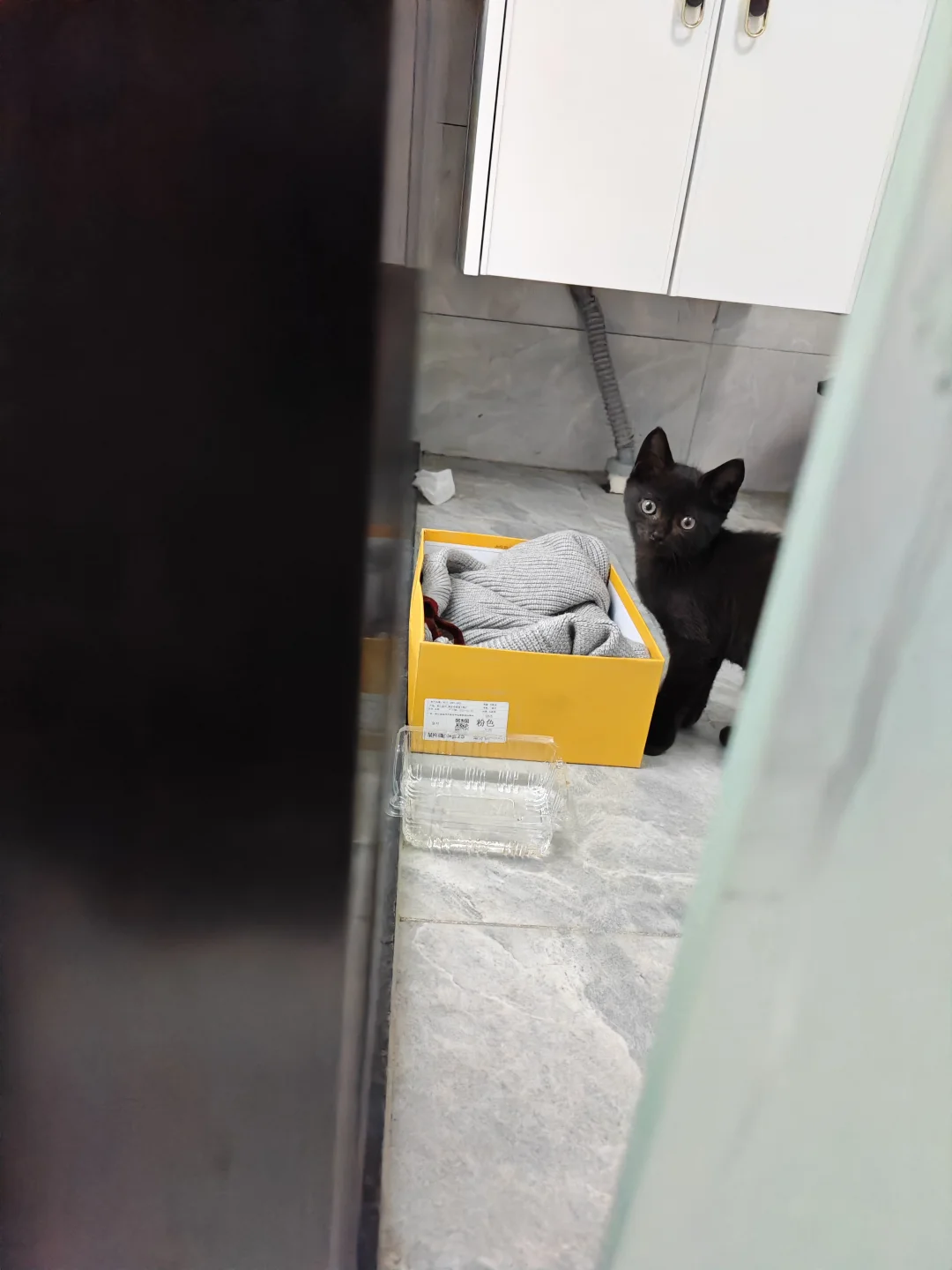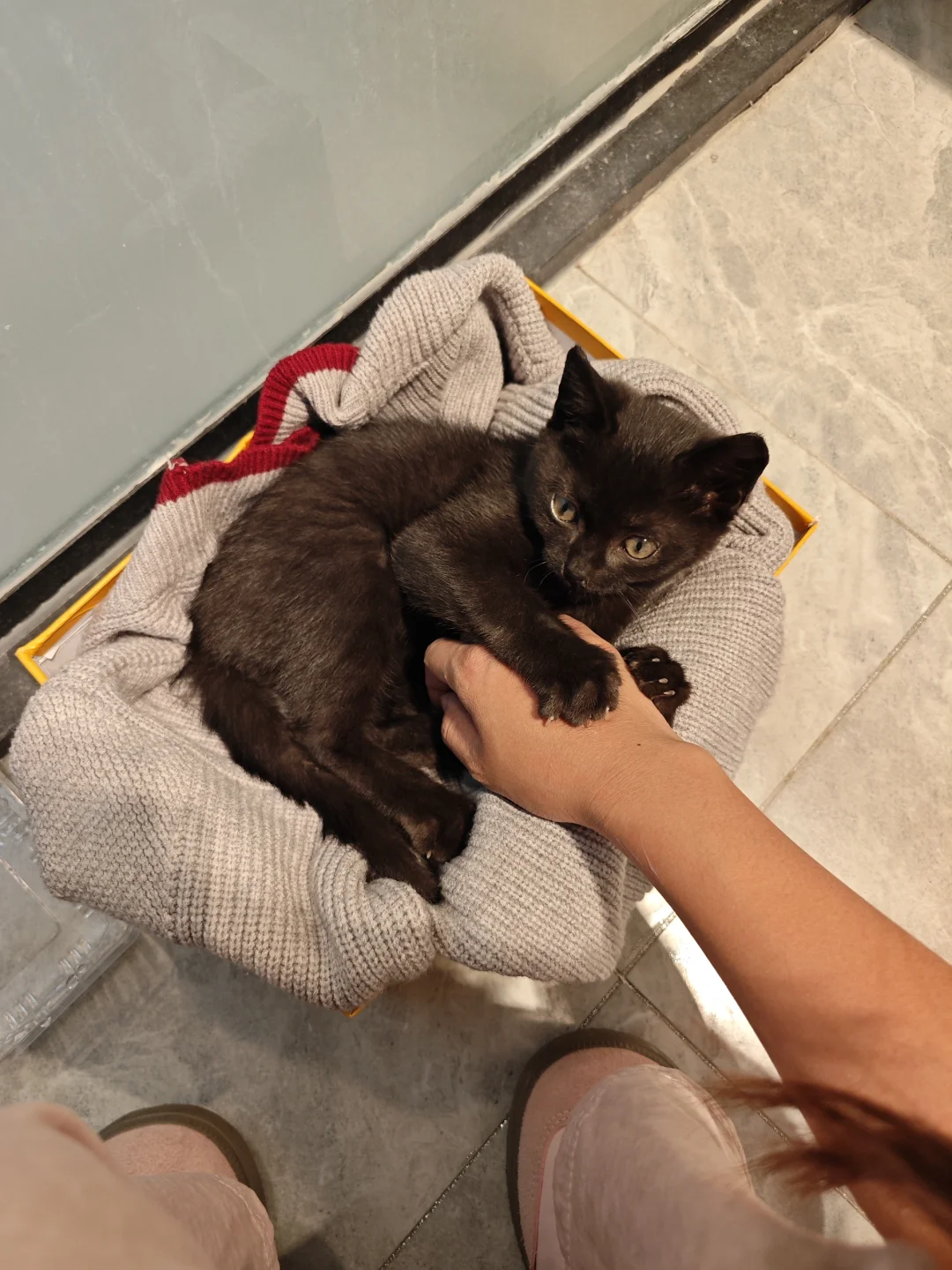 北京海淀区这边,马路边捡到一只两个月左右的小奶黑猫,纯黑。不怕人 比较黏人。由于个人原因暂时无法喂养,想养小猫的可以私聊[抽泣R]