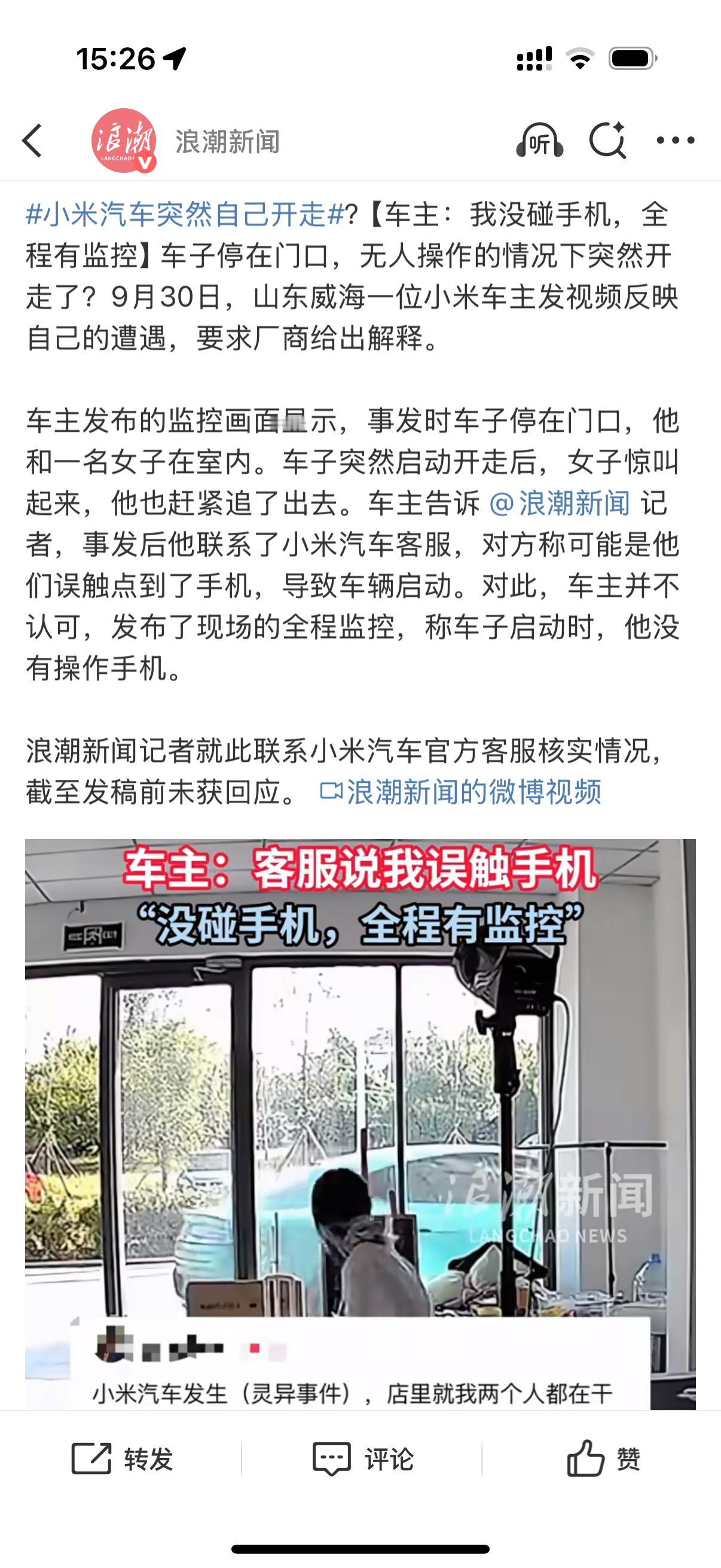 小米汽车突然自己开走自动泊车还是触碰了手机📲?