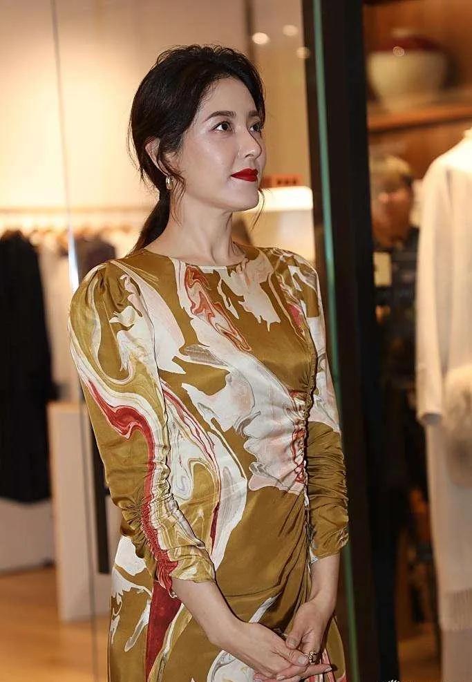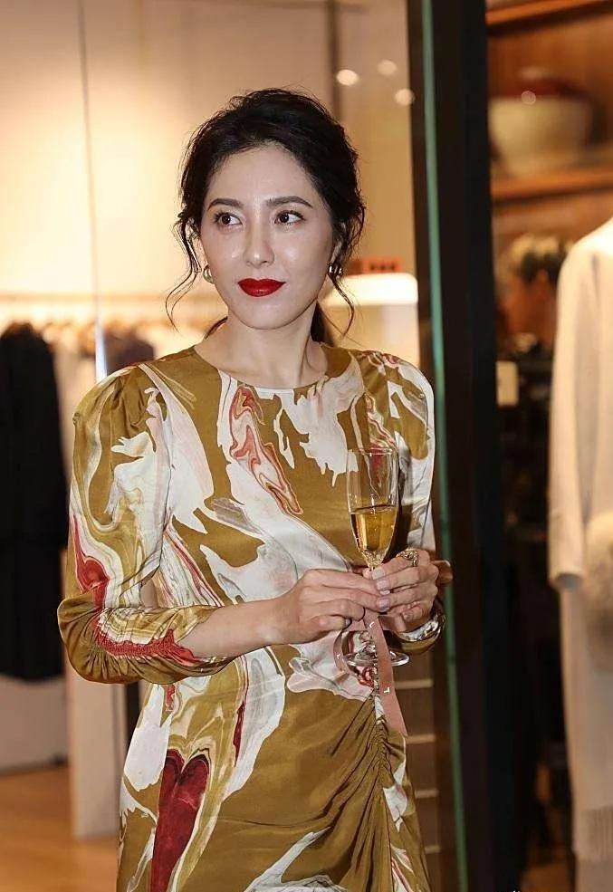 曾黎一袭油画印花长裙加身,裙上的色彩如同将艺术画布穿在身上,行走间尽显从容优雅。她手举香槟杯,红唇明艳,目光流转间,既有成熟女性的韵味,又透着难以抵挡的魅力。