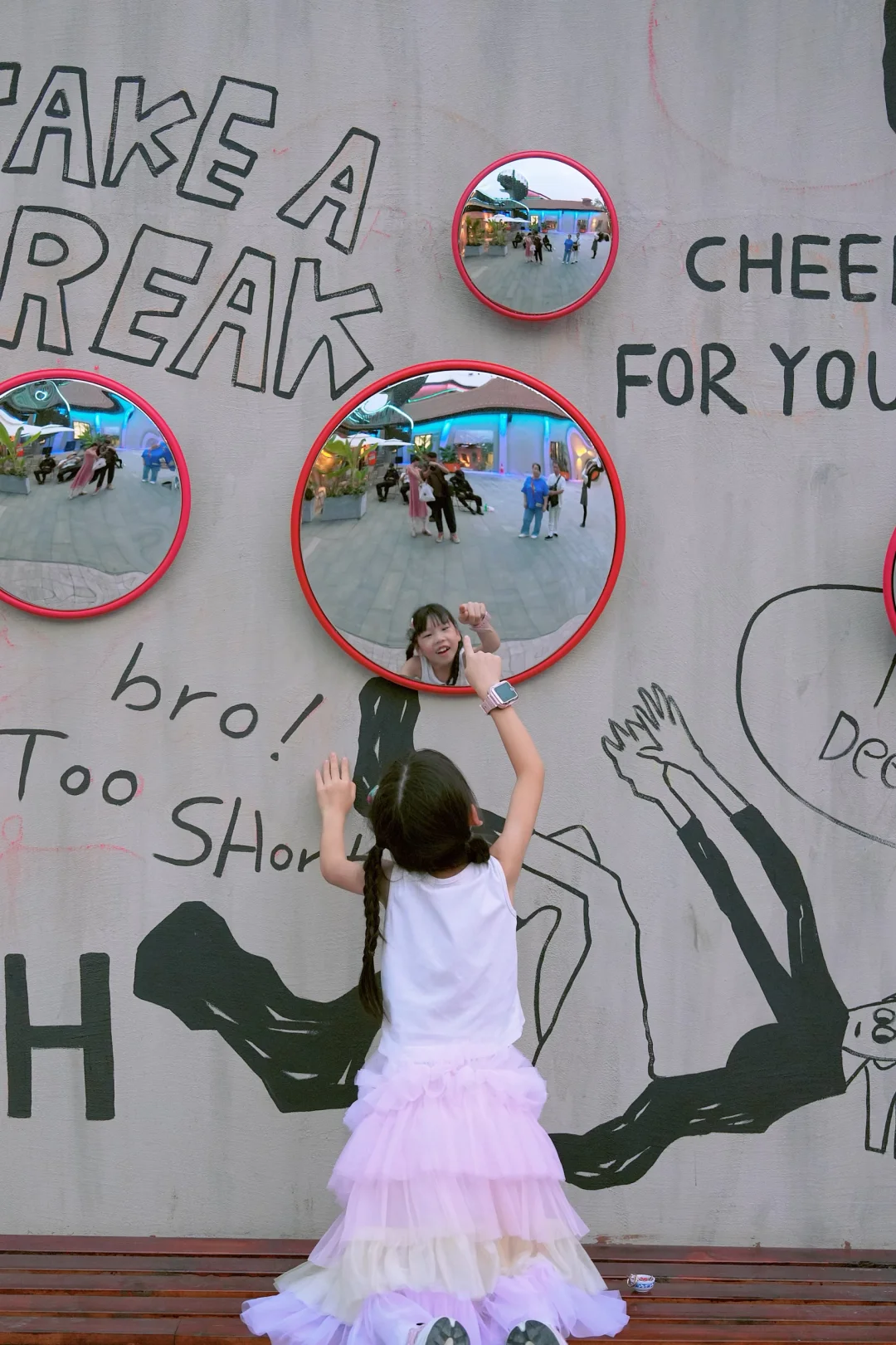 除了派对,街区里到处都是宝藏拍照点。🤳转角处有画着老武汉街景的涂鸦墙。