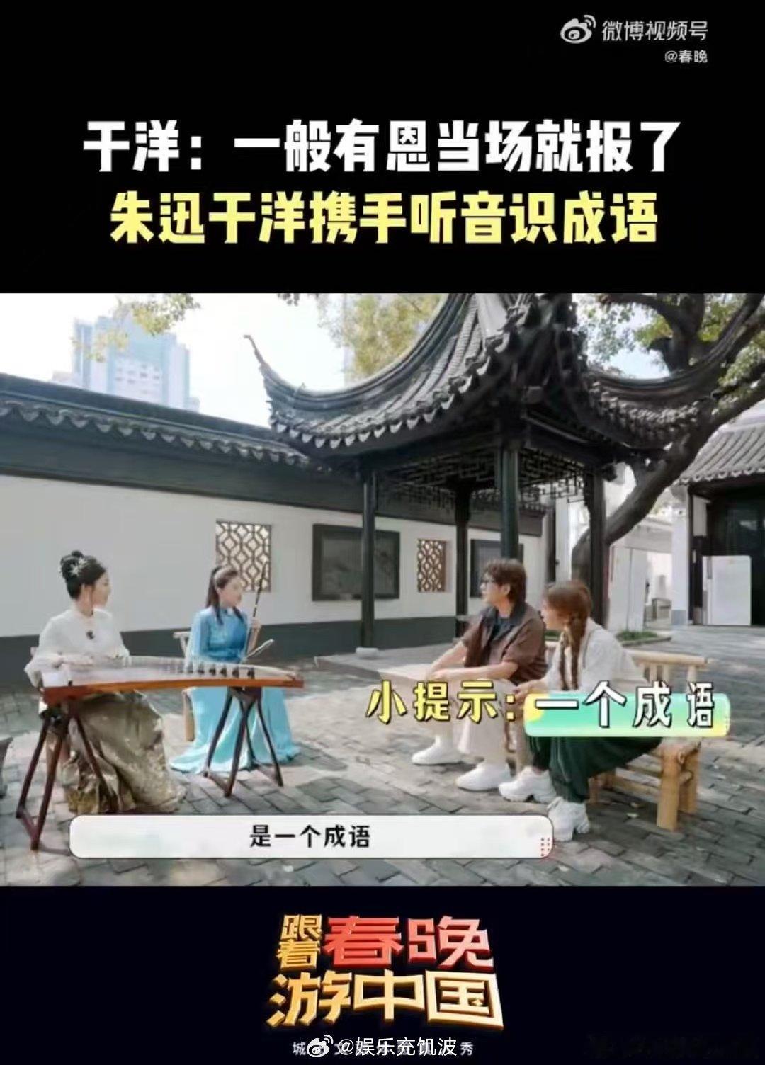 于洋有恩当场就报了 跟着春晚游中国 于洋这“当场报恩”也太给力了!跟朱迅搭档听音识成语,对方搭把手他就回援,互帮互助的样子,看得人心里暖暖的