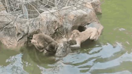 猴界宫斗剧现场!泳池边围殴,是深仇大恨还是争风吃醋呀? 瞧这猴池里的阵仗!俩只猴