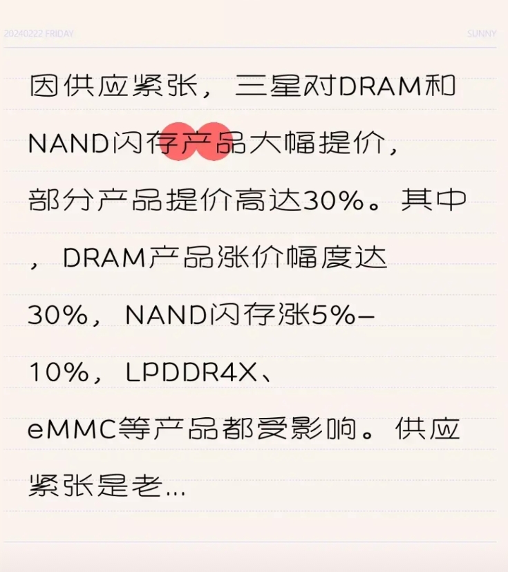 因供应紧张,三星对DRAM和NAND闪存产品大幅提价,部分产品提价高达30%。