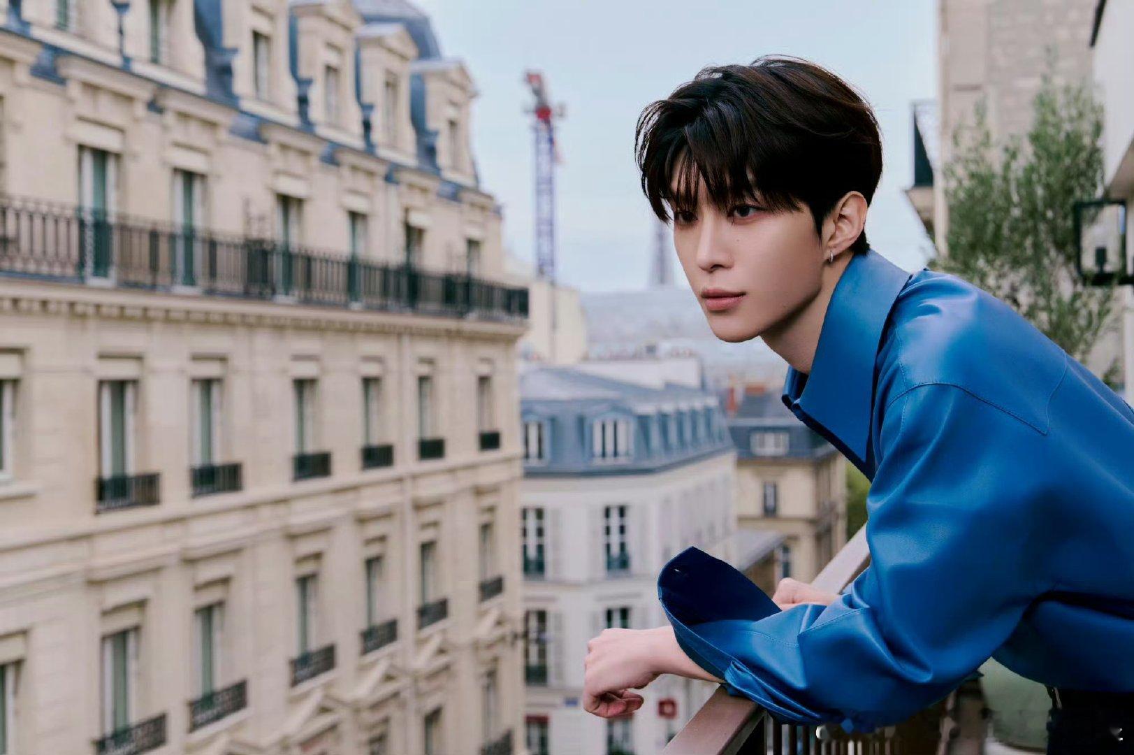 范丞丞纪梵希看秀造型范丞丞巴黎看秀造型范丞丞这身太会穿!蓝色皮质外套配麂皮长裤,把时髦与帅气焊在身上