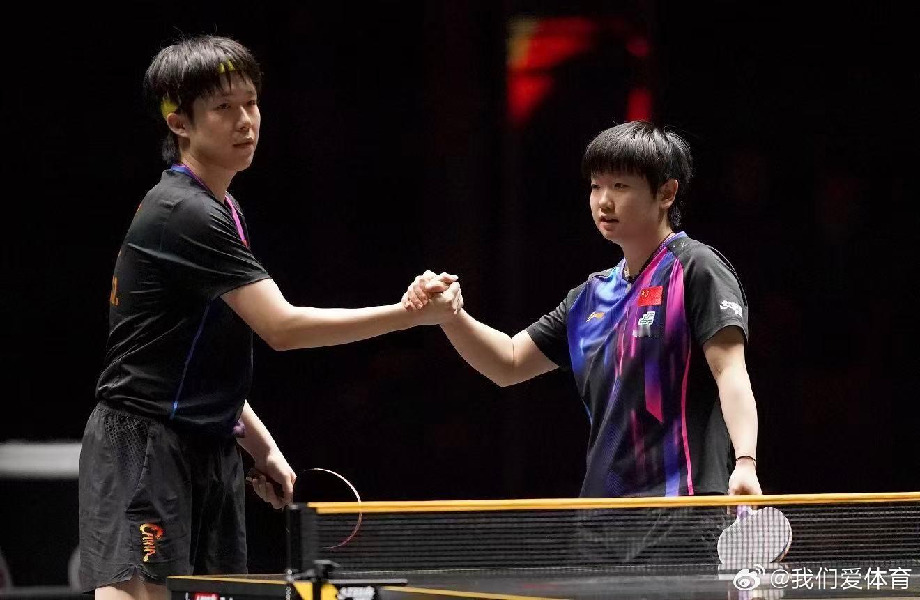 王楚钦说:我觉得还是非常开心能拿到这个大满贯的混双冠军,毕竟也是时隔世锦赛之后有四、五个月的时间没有和莎莎配合。包括在这期间,混双的训练也几乎没有。也是和肖指导,包括我们三个一起沟通,还是希望我们能够参加总决赛的初衷和目标。所以来到这次大满贯。还是我们两个对于比赛的认知、调动还是非常一致的,也非常想拿到这次的冠军。对每场比赛胜利的欲望,在赛场的调动都是非常好的。包括整个比赛的沟通是非常流畅的。更多的时候是面对自己的队友这种比赛的时候,我们自身的沟通要比以前更高效和流畅。所以说也是通过这次比赛,我们总结混双的经验,希望以后越来越好。
