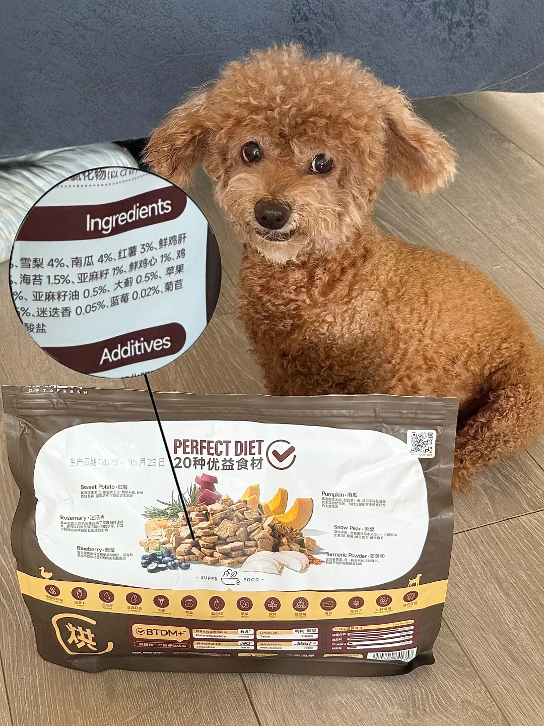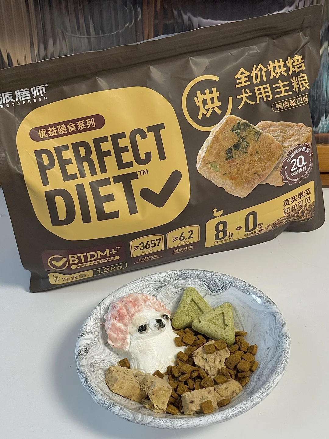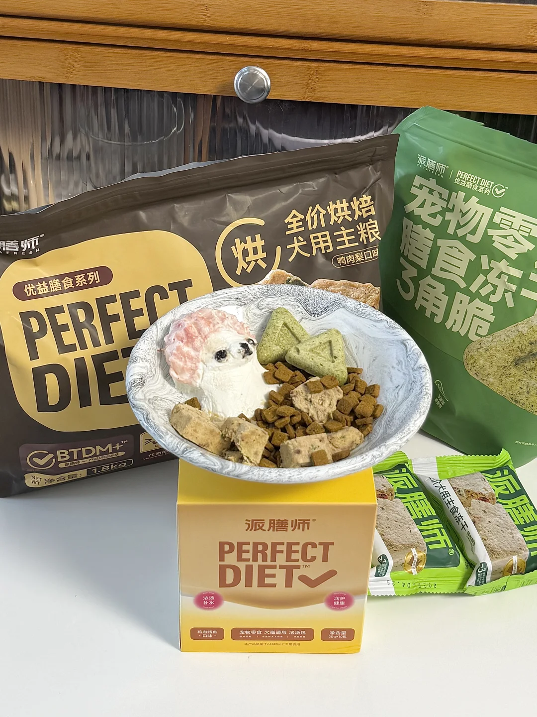 无糖厚酸奶、角豆粉、芝麻酱、草莓粉、冻干、浓汤包、狗粮(今天用的是派膳师优益膳食鸭肉梨烘焙狗粮,每一颗都可以看到真实的食材,并且采用了90度低温烘焙8h的技术,不但保留了更多的营养还清爽可口,这款粮采用食材配方也注意到了狗狗清热去火的需求,鲜鸭肉、雪梨、大蓟都是凉性食材,像可可这种容易出现泪痕的狗狗太适合啦~派膳师除了狗粮还有更多美味的宠物零食,我用到的冻干和浓汤包也是他们家的,过几天就是亚宠展啦,迫不及待想去去线下体验更多精彩!)
