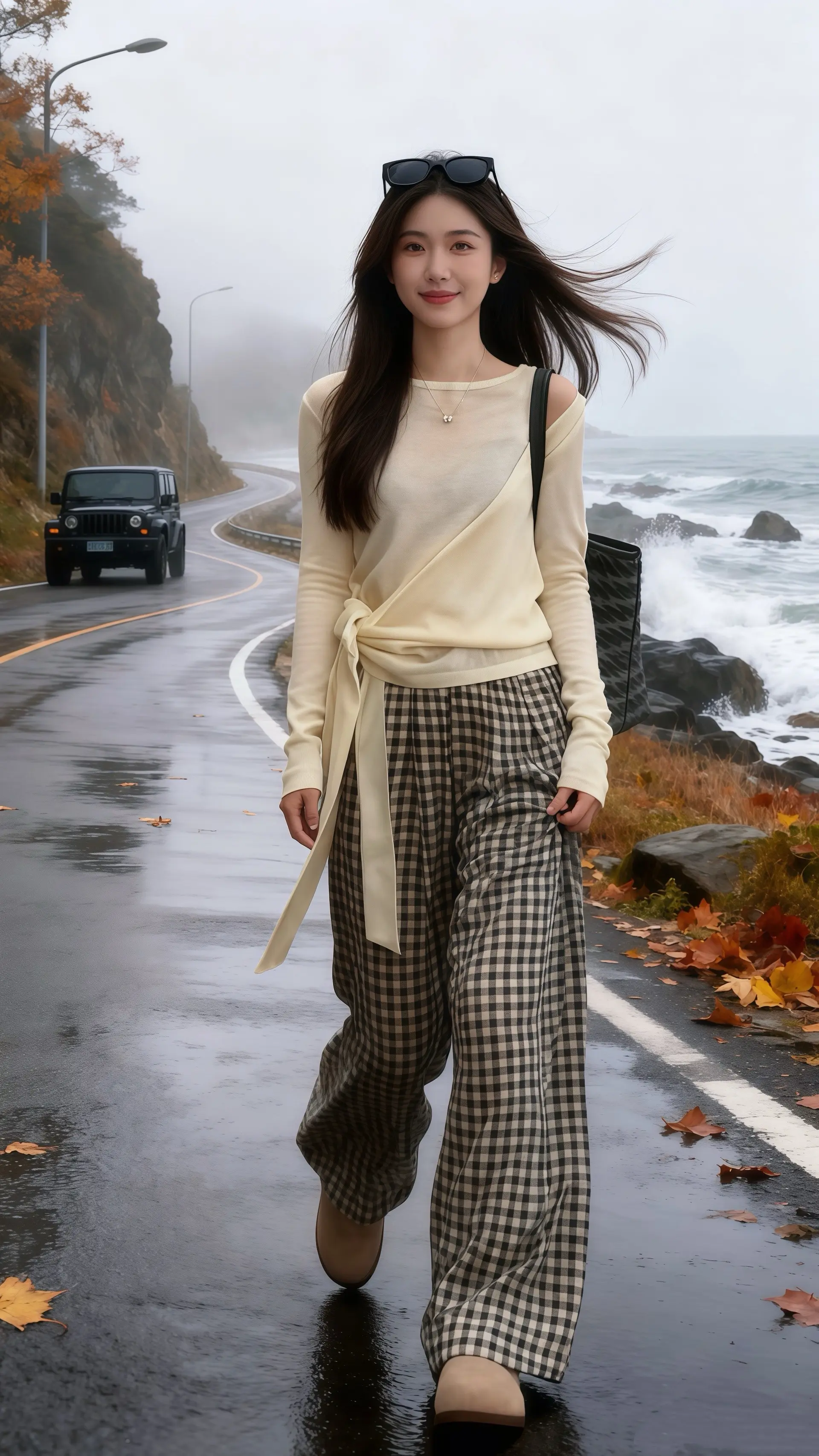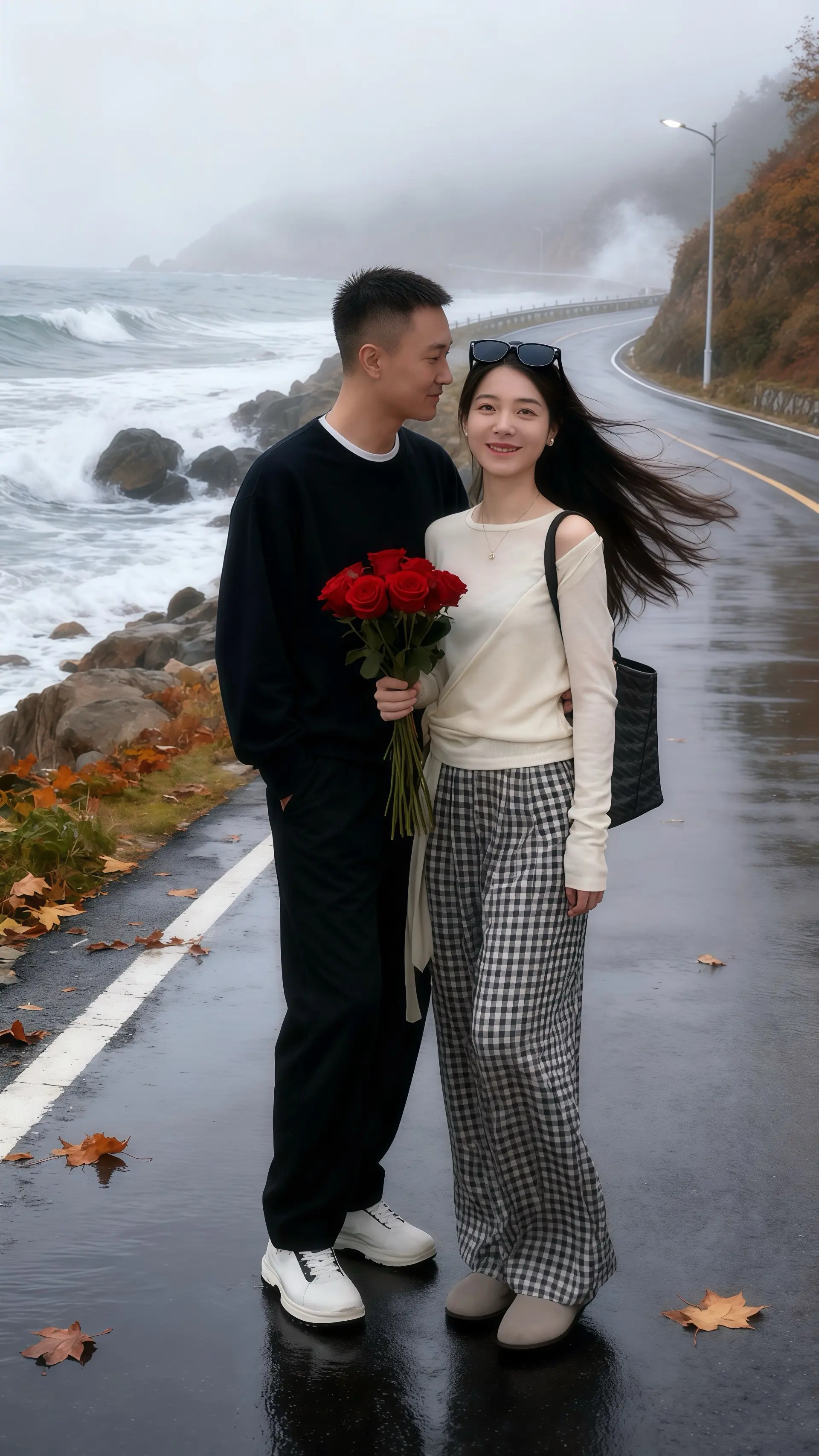 他们并肩走在海边,聊着彼此的故事,分享着生活的点滴。阳光透过云层洒下来,照在他们身上,也照亮了他们的笑容。在这个秋日的海边,他们的故事,才刚刚开始。