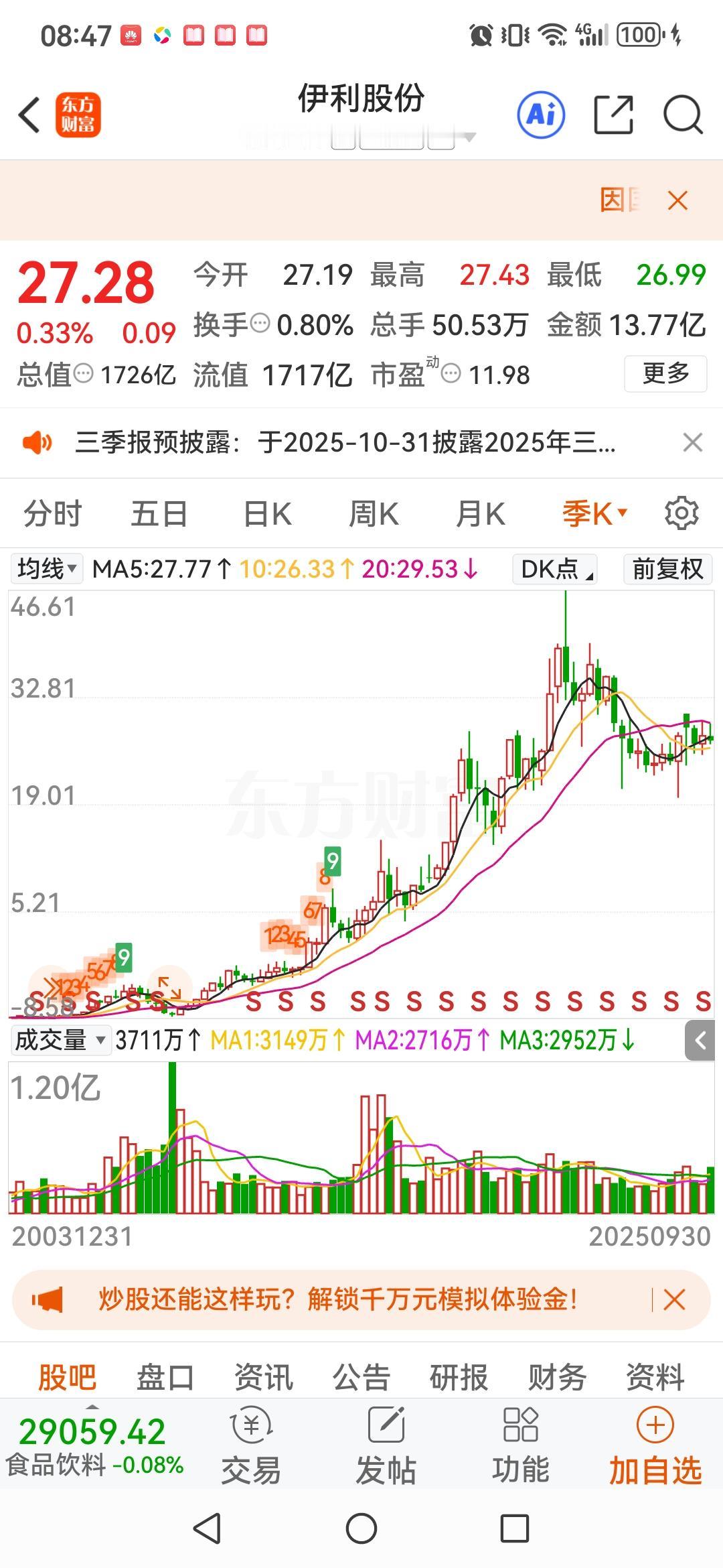 涨有涨的逻辑,不涨有不涨的道理。这几天又有人拿所谓的绩优股伊利股份不涨反跌说事,那我也拿一支同样不涨的科创板个股菱电电控的数据做对比: 看盘子,一个5000万,一个63亿;看行业,一个做持续渗透的新能车电控系统,一个做人口退潮下的食品;看股东,一个4000余人,一个40万人;看成长,一个增长480%,一个下降4%;看景气,一个是GDP的近百倍,一个严重拖GDP的后腿;看位置,一个高点下来跌掉2/3,季K底部且在破发状态,一个季K高高在上等待接续;看趋势,一个底部放量金叉渐成,一个高位盘整待方向选择…… 二选一,假设你买股买未来,你是选菱电还是选伊利?