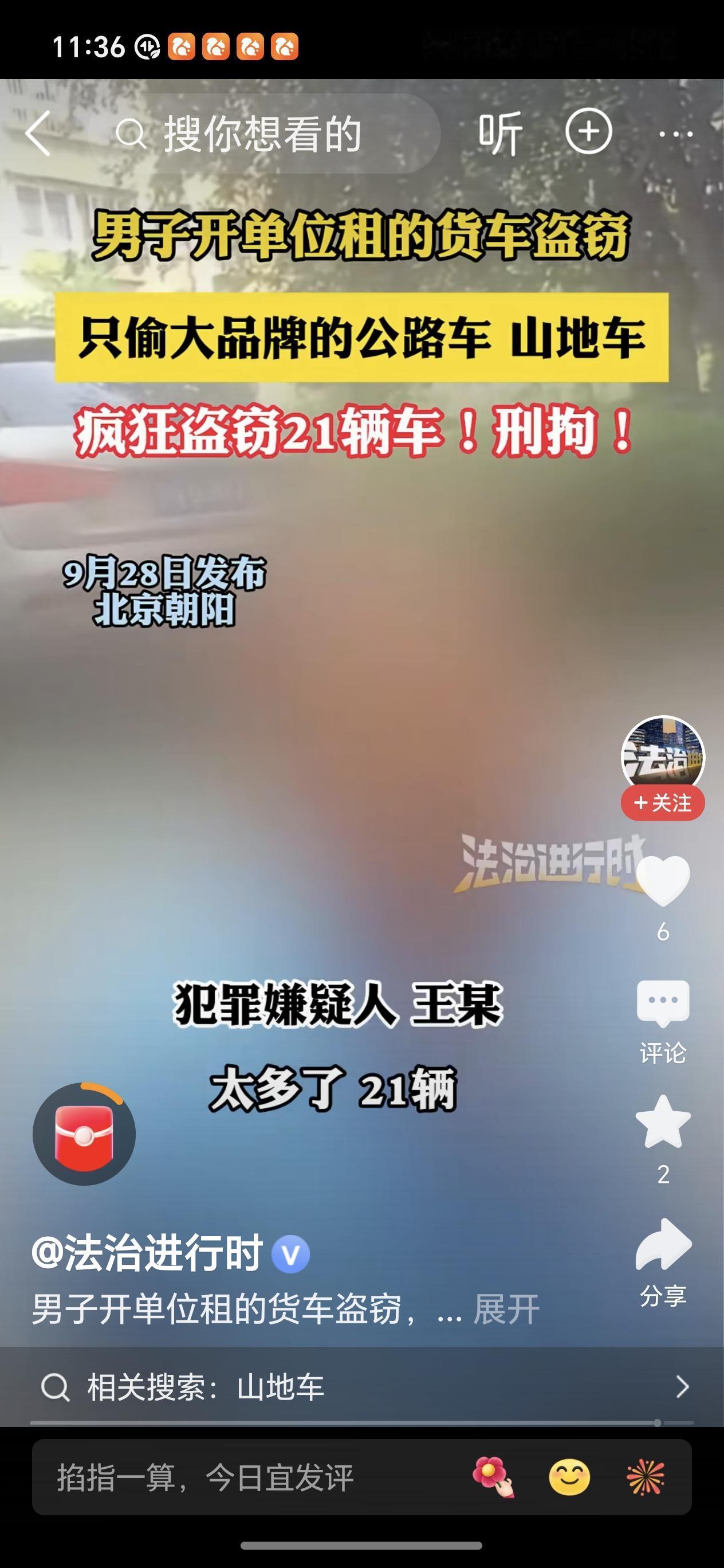 分享我这周有趣的事:近日北京,一男子是自行车发烧友,为给自己改装一辆心仪的自行车,居然明目张胆地去偷自行车,男子在凌晨开一辆小货车,将停放在路边的几辆自行车淡定自若地搬进货车! 目前男子已被北京警方刑事拘留,经审问男子竟偷了21辆自行车进行拆解!这男子太奇葩了,是个痴心的盗贼[捂脸]据说被抓时还没拼装好自己心目中完美的自行车[笑哭][大笑]