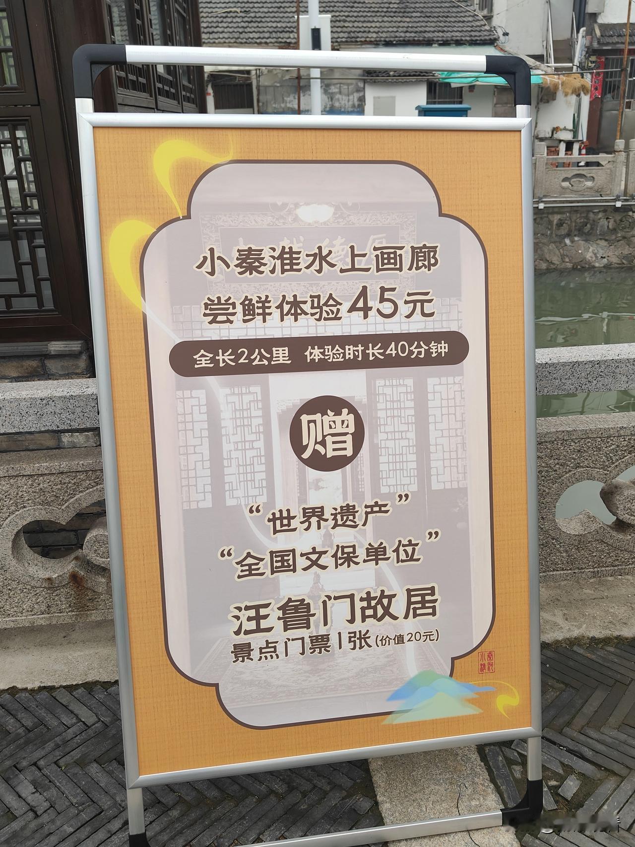 🎫45元可解锁扬州小秦淮水上画廊了,还送汪鲁门故居门票。 扬州又有新玩法啦!小秦淮水上画廊正式开启尝鲜体验,只需45元,就能享受一场40分钟的水上之旅,还赠送一张价值20元的汪鲁门故居门票,简直不要太划算! 小秦淮是扬州明清古城唯一存留的内城河,全长约2公里,北接北城河,南经龙头关汇入古运河。坐在古色古香的游船上,竹篾顶、木座椅,仿佛穿越回了古代。沿途可以欣赏到粉墙黛瓦、马头山墙的古建筑,感受“小尺度、渐进式、微更新”的城市更新理念。 40分钟的行程,足够让你沉浸式体验扬州的水乡韵味。而且,现在购买体验票,还能免费参观汪鲁门故居,这可是世界遗产全国文保单位哦,能近距离感受扬州的历史文化底蕴。 赶紧约上小伙伴或家人,一起来小秦淮水上画廊,开启一场诗意的水上之旅吧!